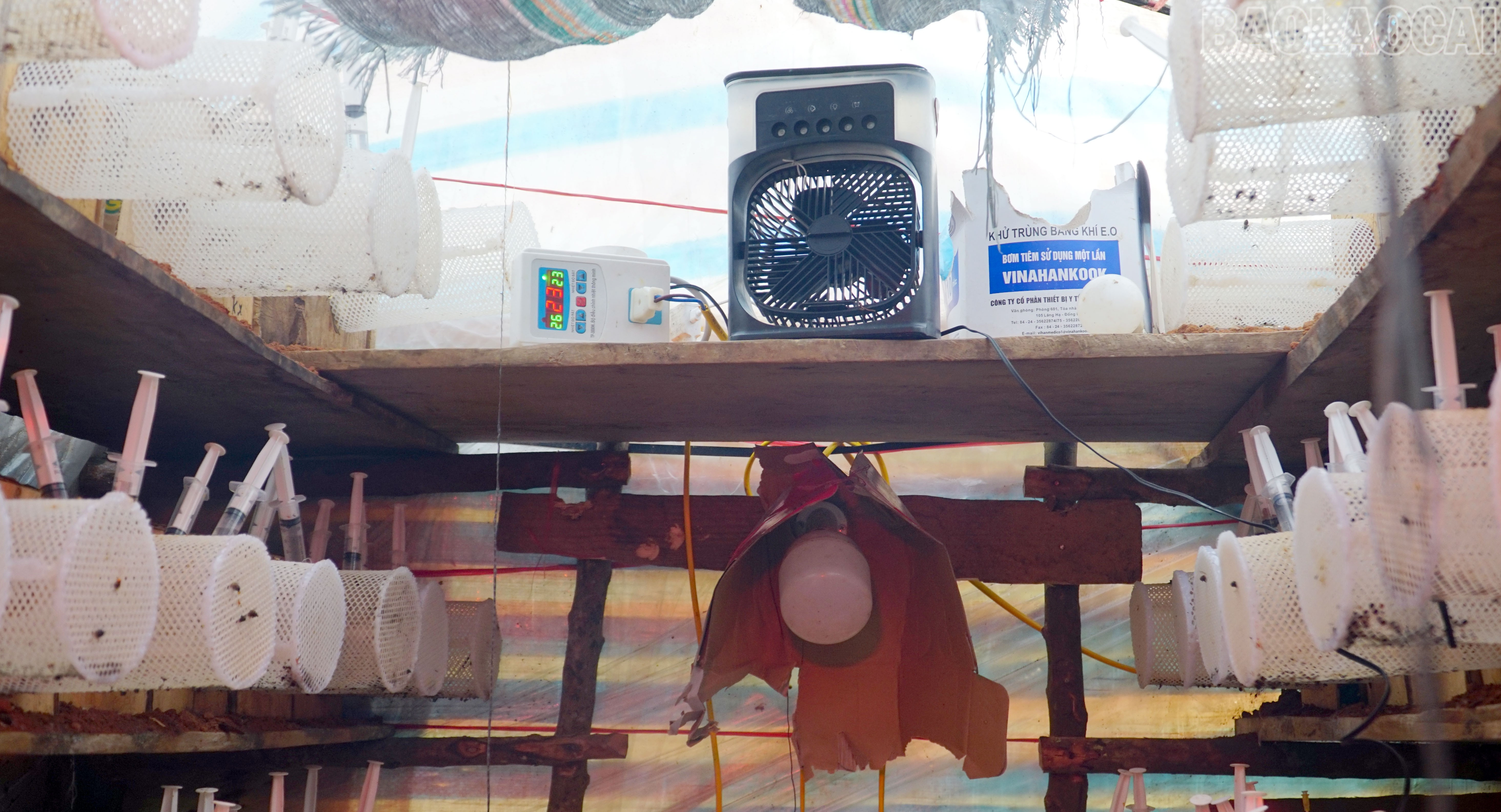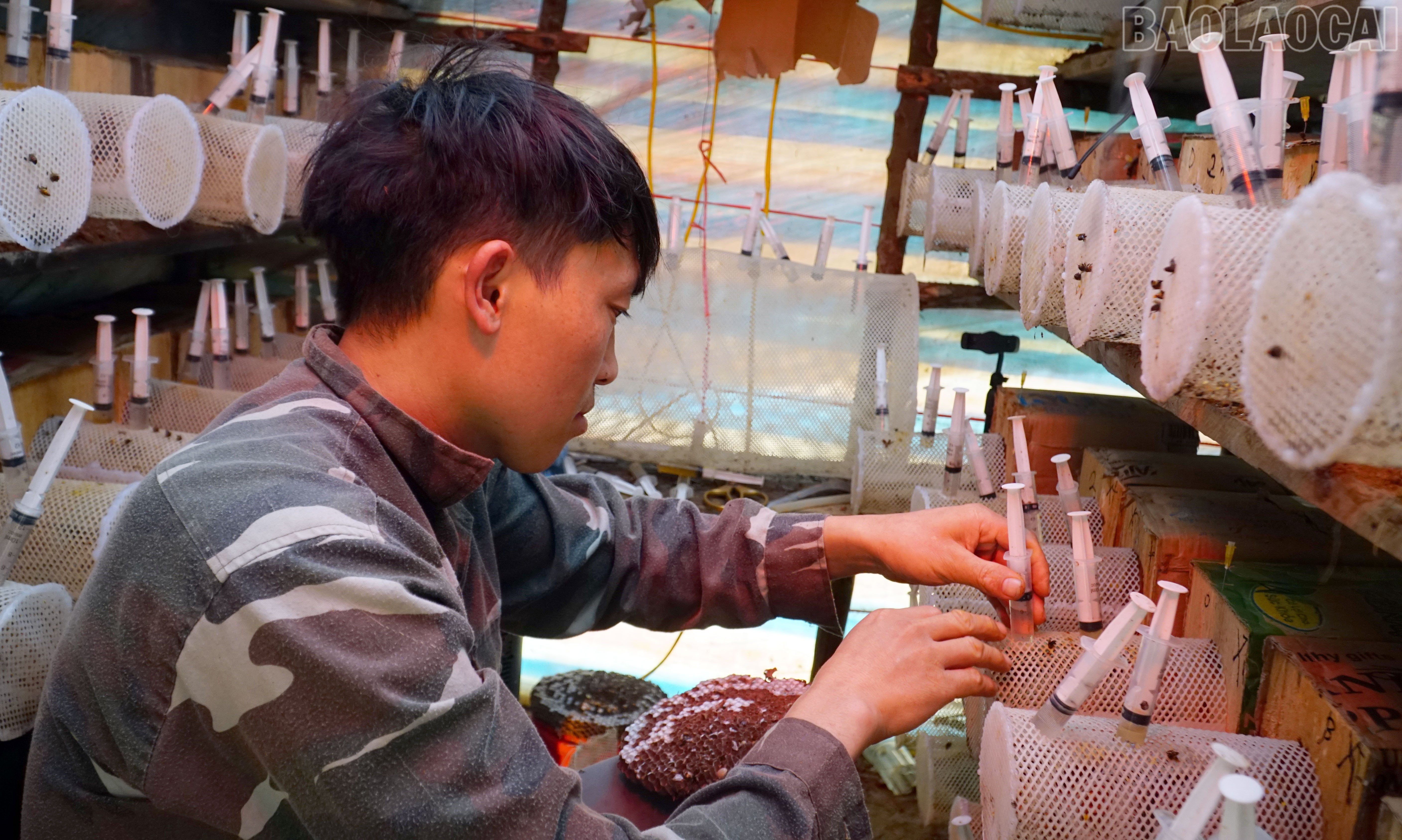 Anh Khang A Páo lắp đặt đầy đủ trang thiết bị để nuôi ong.