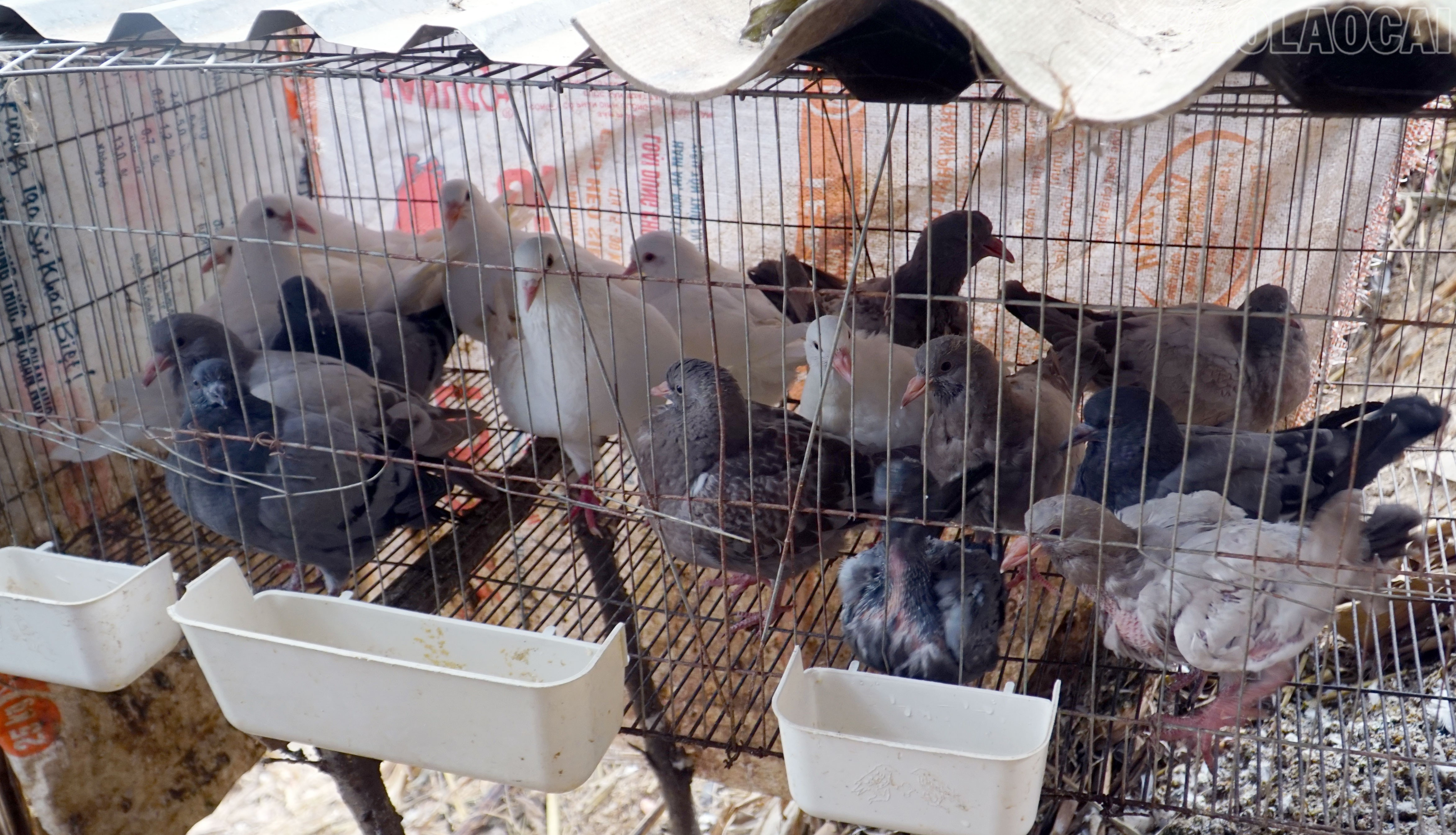 Đàn chim bồ câu thịt chuẩn bị xuất chuồng được gia đình anh Hờ A Chống nuôi nhốt riêng.