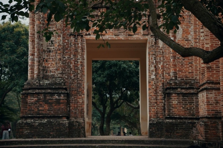 Những bức tường gạch đỏ dày, phủ rêu phong theo thời gian tạo nên vẻ đẹp cổ kính