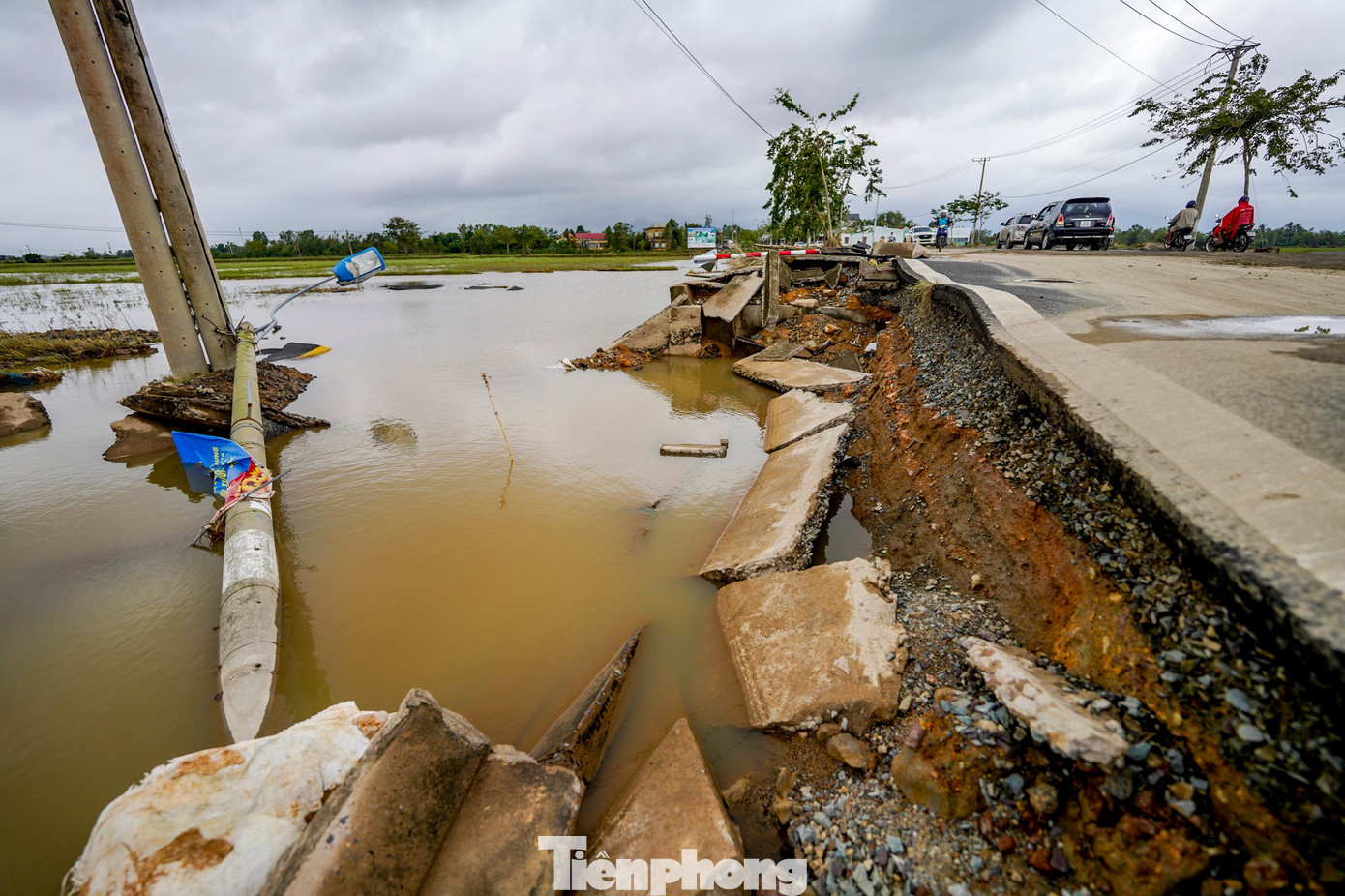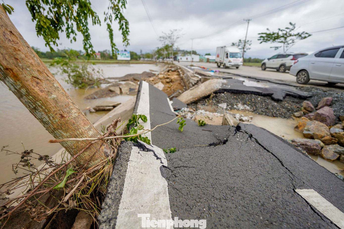 Nhiều đoạn trên các tuyến đường chính của các xã đã bị dòng lũ tàn phá nặng nề.