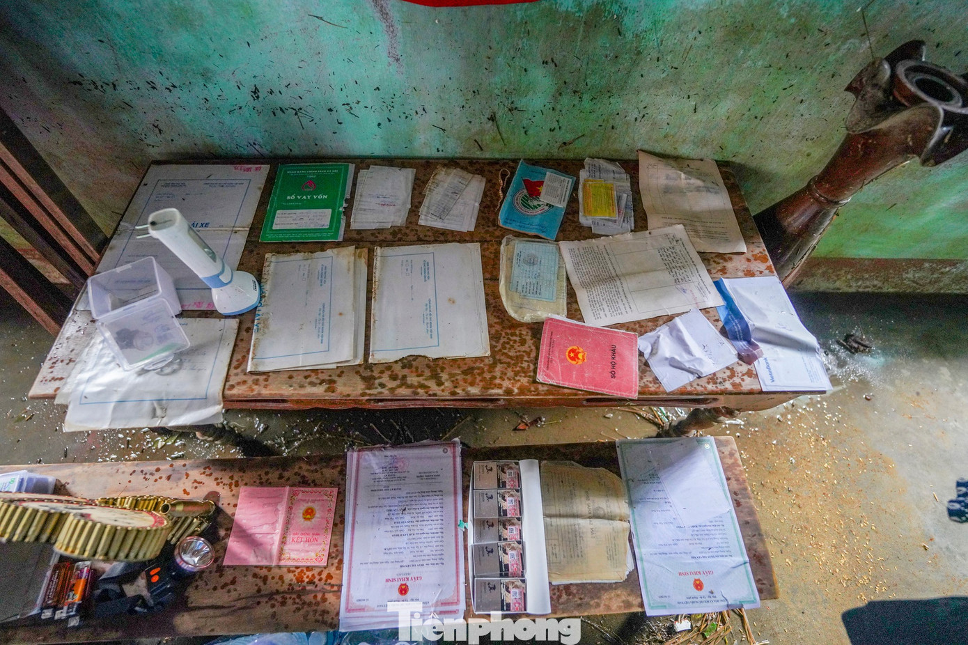 Nước lũ đã rút, nhưng để lại sự tàn phá nặng nề: Toàn bộ giấy tờ, sổ sách quan trọng nhất của gia đình – từ sổ đỏ, giấy tờ tùy thân đến sổ vay vốn – đều nằm la liệt trên bàn, ngấm nước và dính đầy bùn đất.