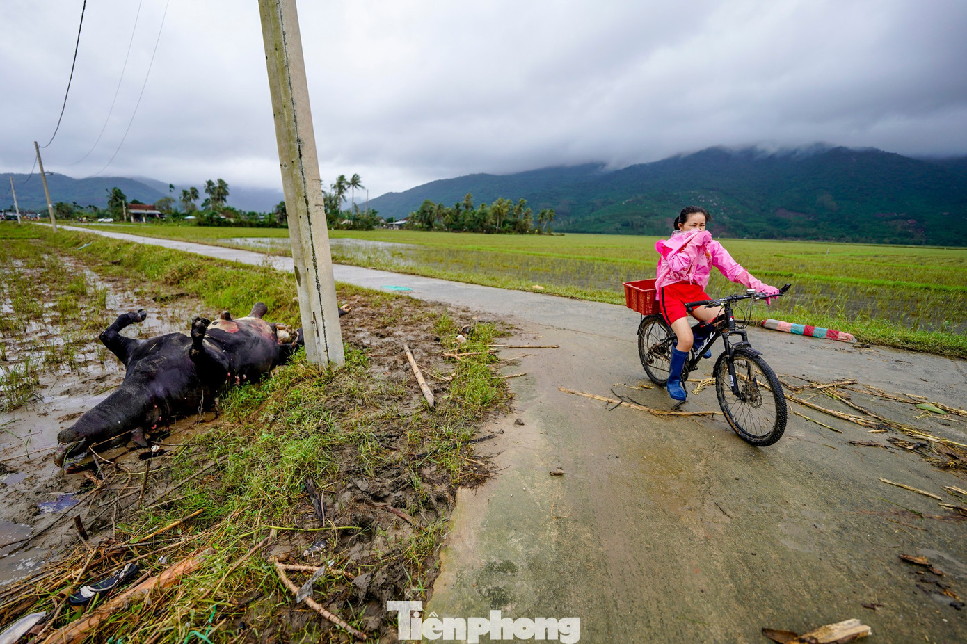 Trong căn nhà vừa dọn tạm, chị Trần Thị Kim Trinh nghẹn ngào kể lại khoảnh khắc sinh tử: "Nước đã dâng lên đến cổ, căn nhà rung bần bật. Tôi phải gồng mình cõng bố mẹ (đều không biết bơi) và bồng con gái cùng nhau trèo lên nóc nhà để tìm sự sống."