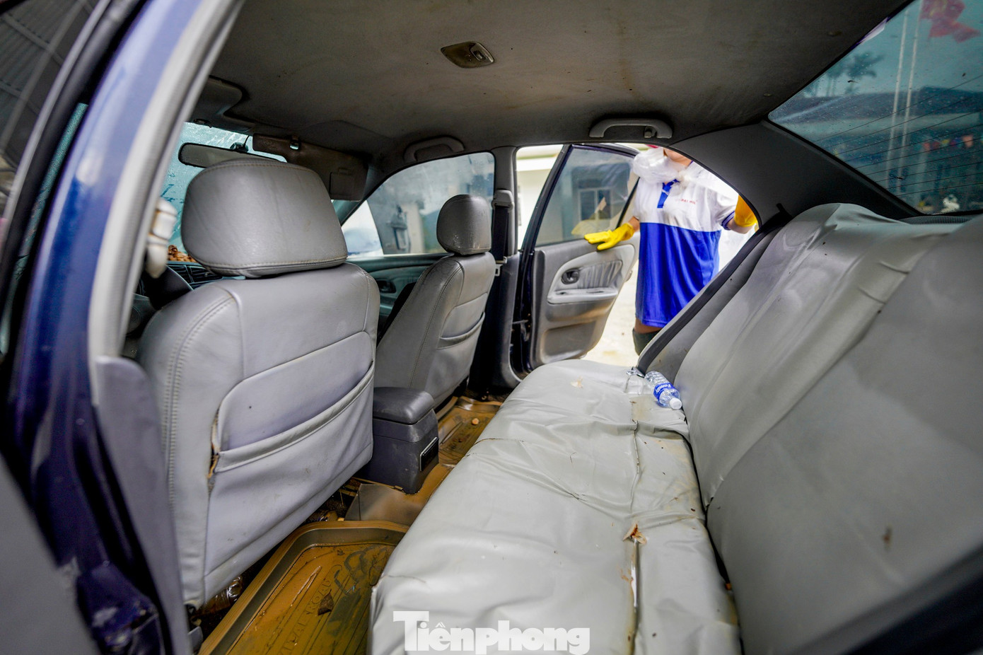 Bên trong chiếc ô tô này, bùn đất đã tràn vào làm hư hại hoàn toàn nội thất, từ sàn xe đến ghế da. Việc phục hồi và sửa chữa phương tiện sau lũ là một gánh nặng tài chính đối với người dân.