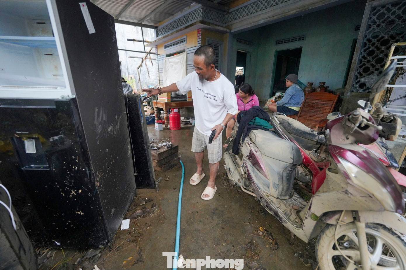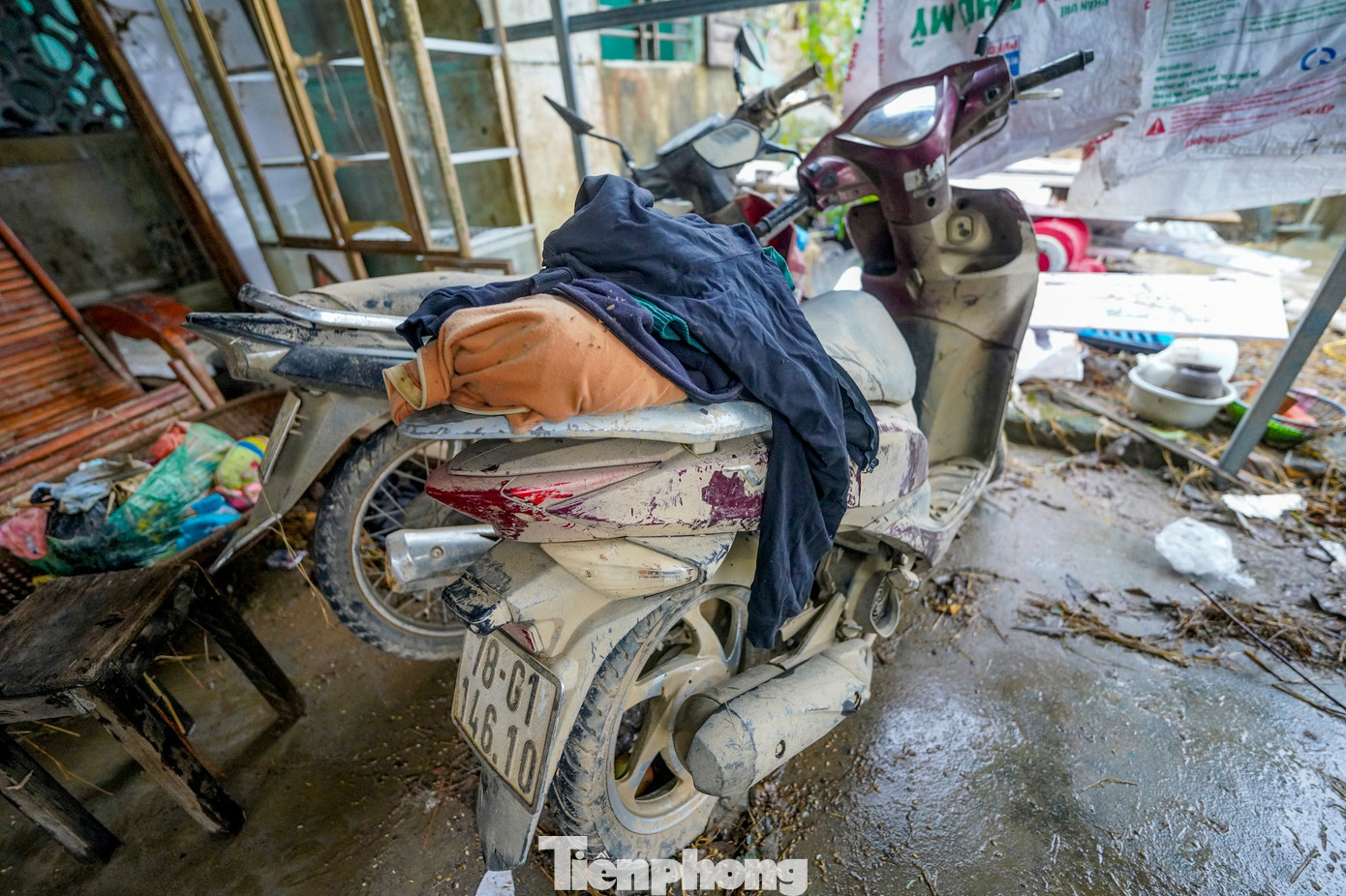 Sau khi nước lũ rút đi, cuộc chiến với bùn đất và đống đổ nát mới thực sự bắt đầu. Người đàn ông này đang cố gắng dọn dẹp những gì còn sót lại từ ngôi nhà của mình, giữa bộn bề tủ lạnh, xe máy và vật dụng gia đình bị hư hại, phủ kín trong lớp bùn đất dày đặc.