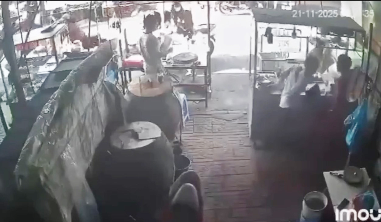 Hình ảnh nghi phạm Phương dùng dao đâm chị O. được camera an ninh ghi lại. Ảnh: Chụp màn hình