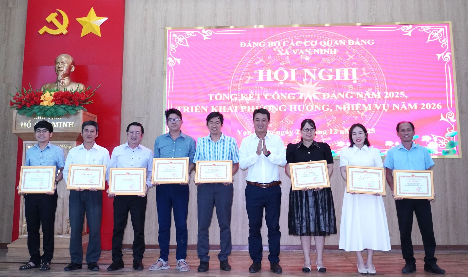 Dịp này, Đảng ủy Các cơ quan Đảng xã Vạn Ninh tặng giấy khen cho 1 tập thể và 7 cá nhân hoàn thành xuất sắc nhiệm vụ năm 2025.
