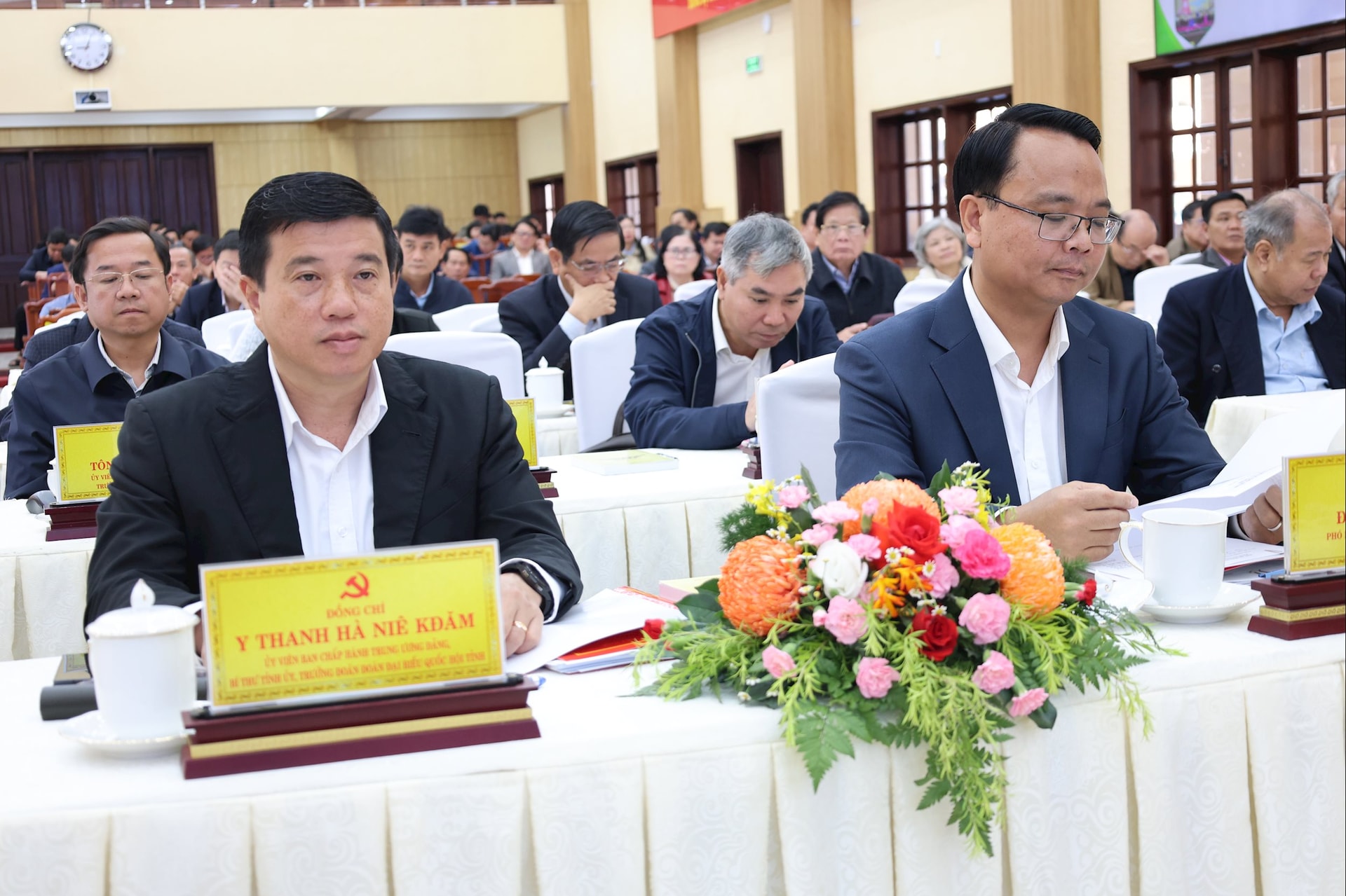 Đồng chí Y Thanh Hà Niê Kđăm, Ủy viên Ban Chấp hành Trung ương Đảng, Bí thư Tỉnh ủy, Trưởng đoàn ĐBQH tỉnh và đồng chí Đặng Hồng Sỹ, Phó Bí thư Thường trực Tỉnh ủy dự và chủ trì Hội nghị
