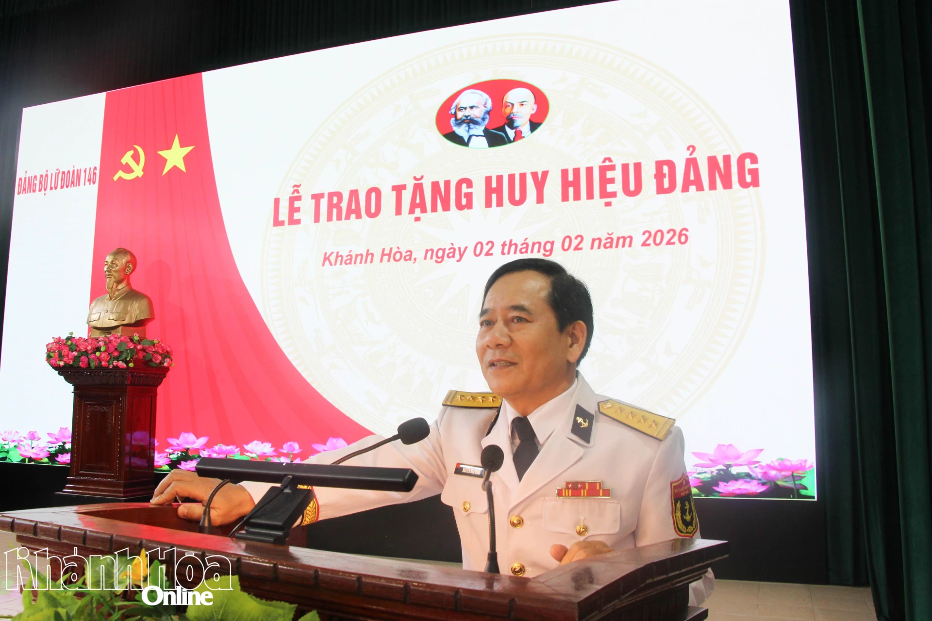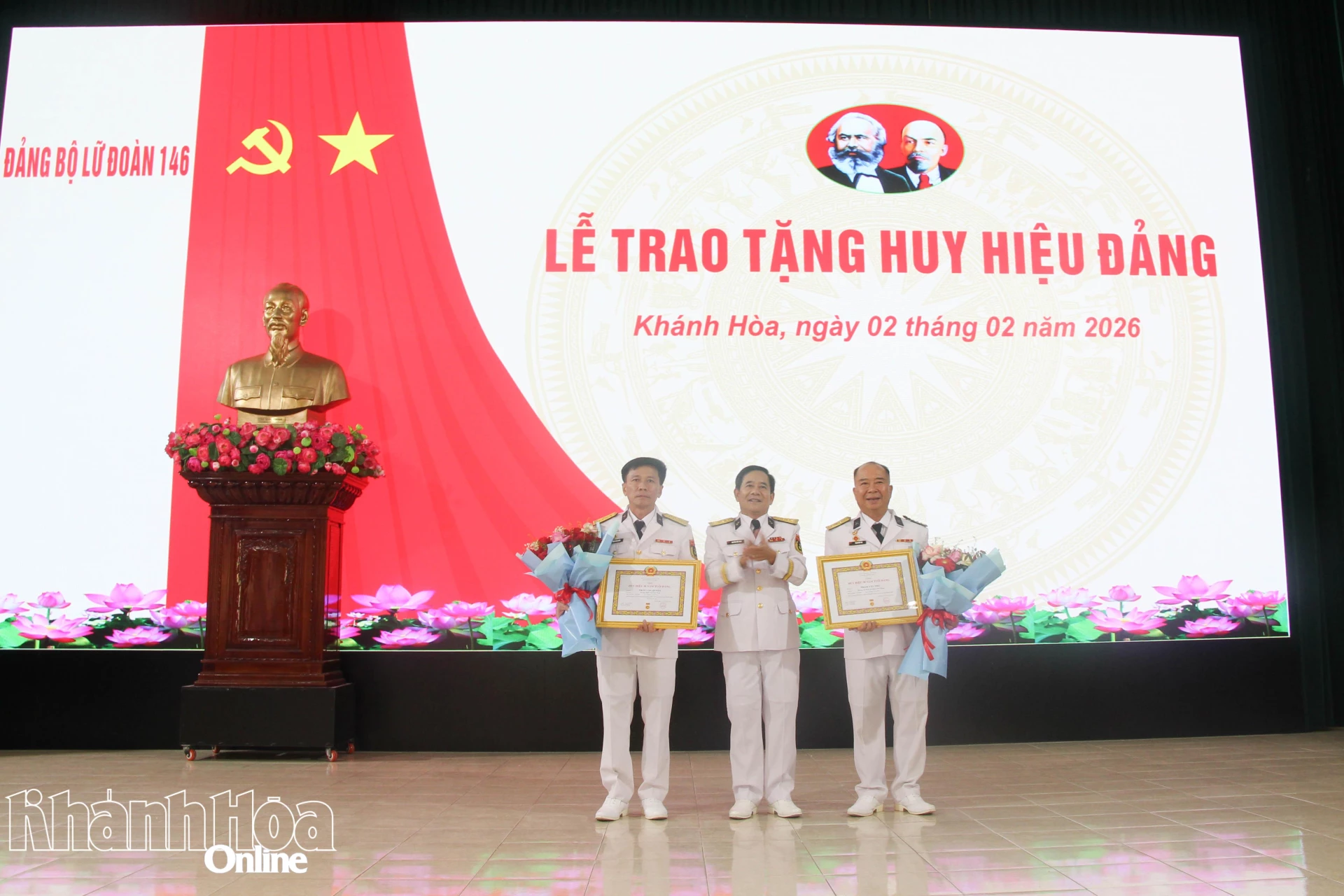 Ngày 2-2, Đảng bộ Lữ đoàn 146, Vùng 4 Hải quân tổ chức Lễ trao Huy hiệu 30 năm tuổi Đảng cho Đại tá Phạm Văn Thọ - Bí thư Đảng ủy, Chính ủy Lữ đoàn và Đại tá Trần Văn Quyển - Phó Bí thư Đảng ủy, Lữ đoàn trưởng.