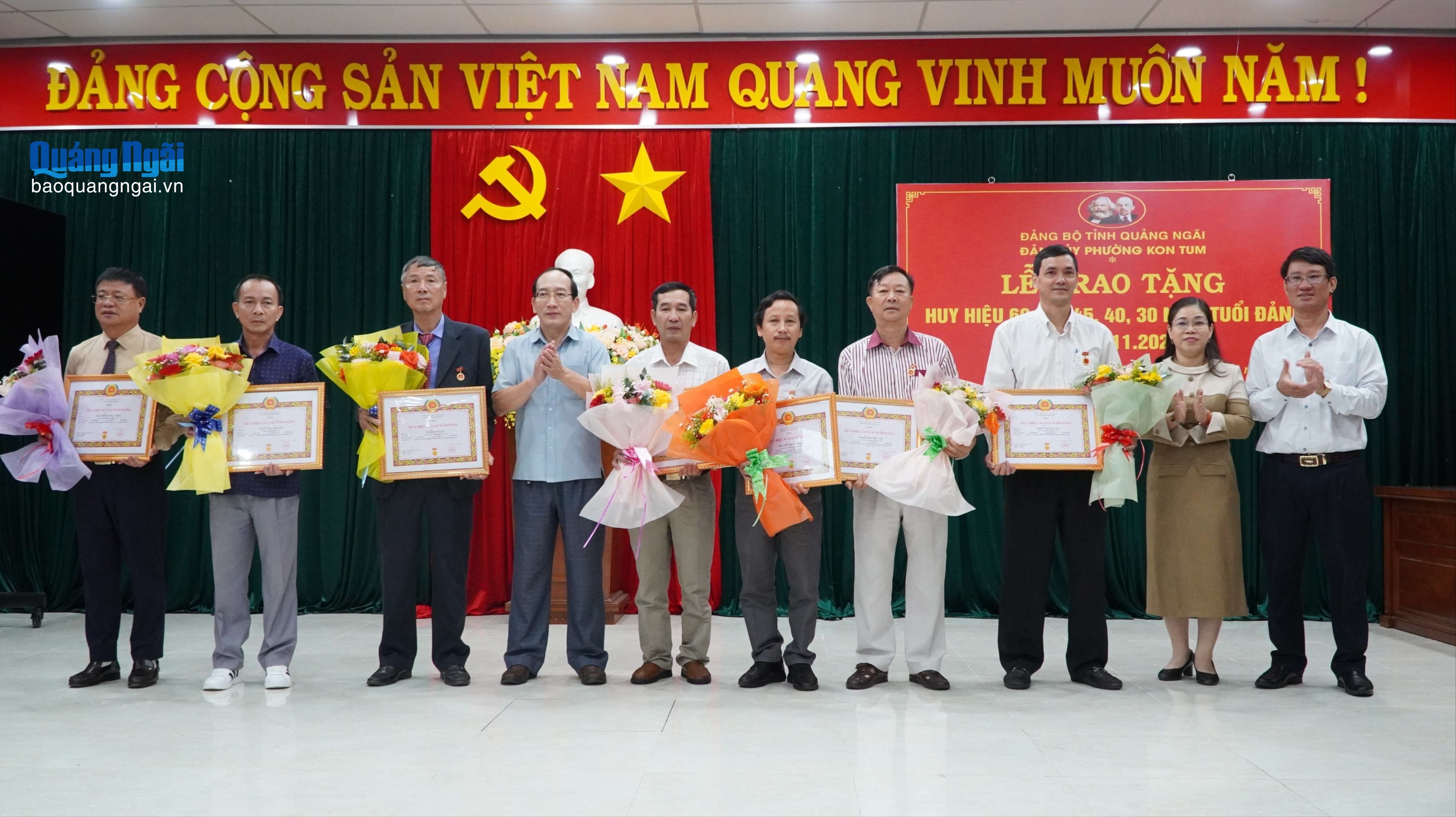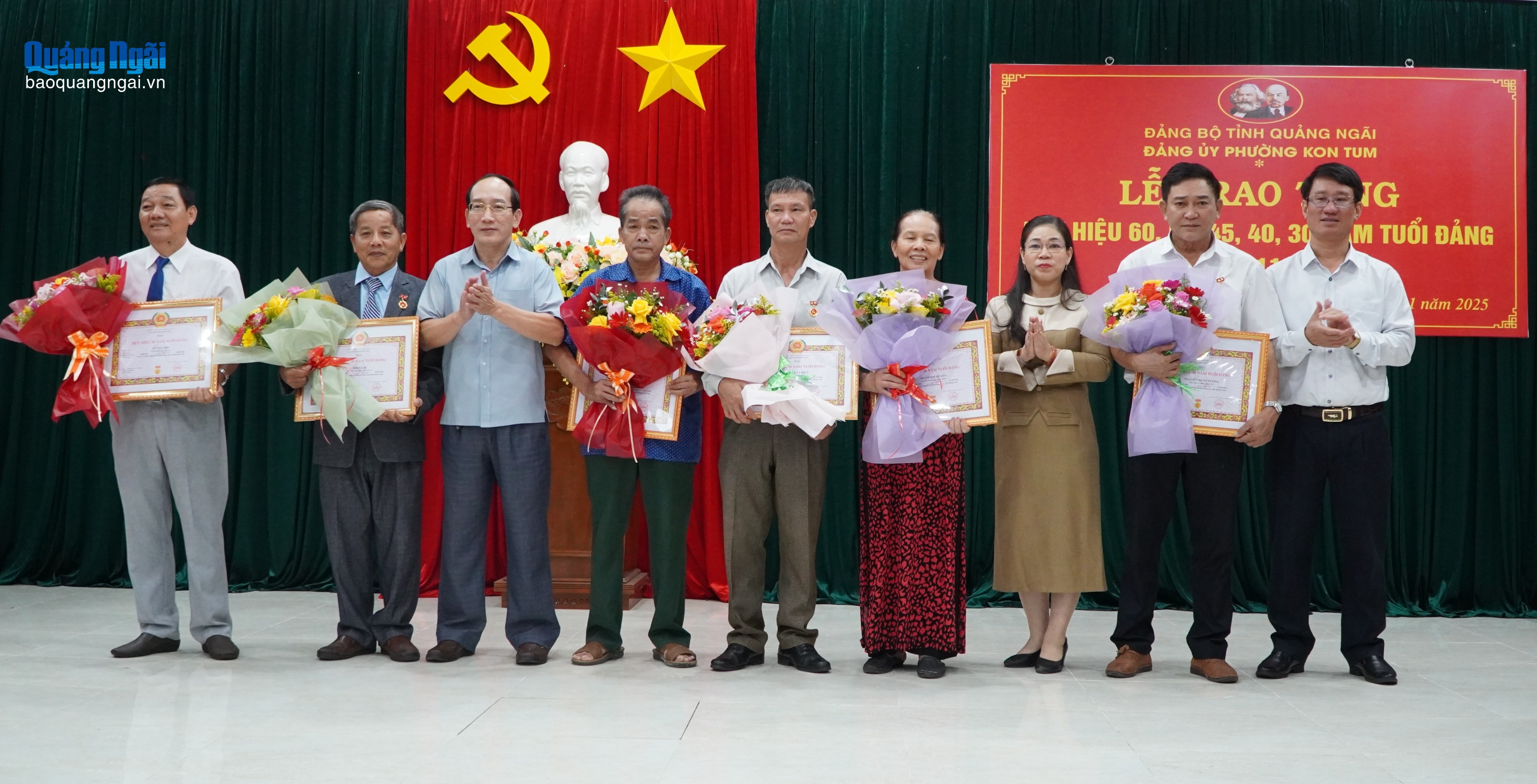 Dịp này, Đảng bộ phường Kon Tum có 39 đảng viên vinh dự được tặng Huy hiệu Đảng. Trong đó, có 2 đảng viên được tặng Huy hiệu 60 năm tuổi Đảng; 3 đảng viên được tặng Huy hiệu 50 năm tuổi Đảng; 5 đảng viên được tặng Huy hiệu 45 năm tuổi Đảng; 12 đảng viên được tặng Huy hiệu 40 năm tuổi Đảng và 17 đảng viên được tặng Huy hiệu 30 năm tuổi Đảng.