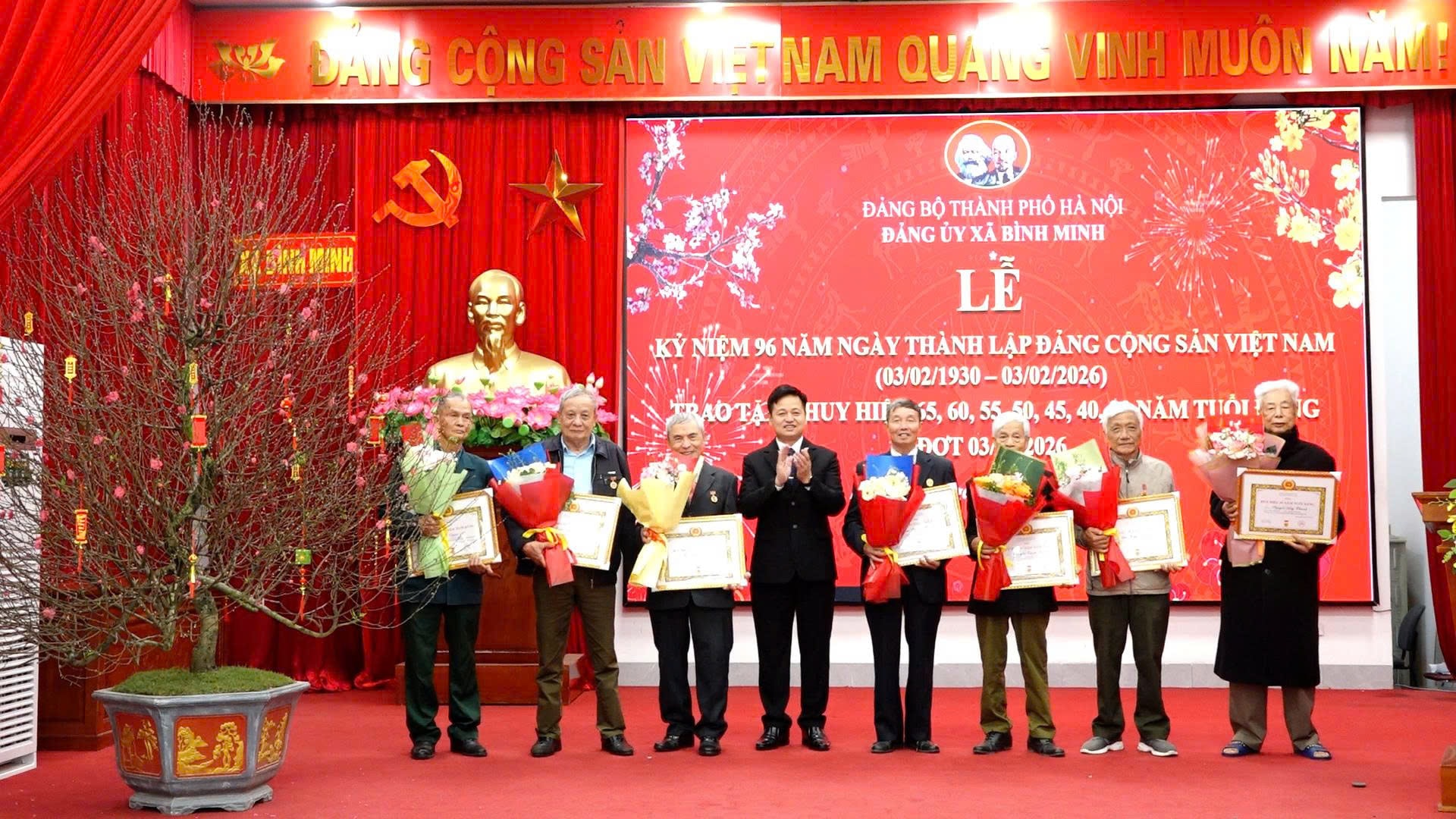 Đợt này, Đảng bộ xã Bình Minh trao Huy hiệu Đảng 65, 60, 55, 50, 45, 40, 30 năm tuổi Đảng tặng 44 đảng viên. Các đồng chí là những đảng viên tiêu biểu, đã trải qua quá trình rèn luyện, phấn đấu bền bỉ, lâu dài, luôn tuyệt đối trung thành với mục tiêu, lý tưởng của Đảng; có nhiều đóng góp quan trọng cho sự nghiệp cách mạng, xây dựng và bảo vệ Tổ quốc và sự phát triển của địa phương qua các thời kỳ.