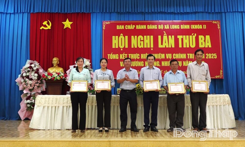 Dịp này, Ban Chấp hành Đảng bộ xã Long Bình tặng Giấy khen cho 5 tập thể và 21 cá nhân có thành tích tiêu biểu trong thực hiện nhiệm vụ năm 2025, trong đó có 3 cá nhân hoàn thành xuất sắc nhiệm vụ 5 năm liền.