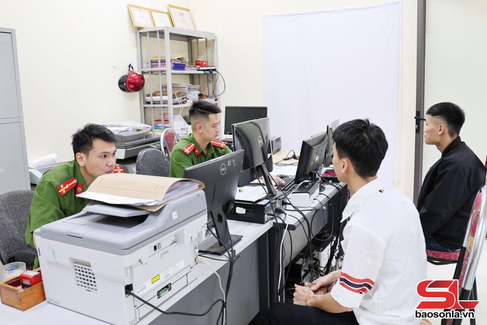 Chi bộ Công an xã Mường Cơi ứng dụng công nghệ thông tin, chuyển đổi số trong hoạt động chuyên môn.