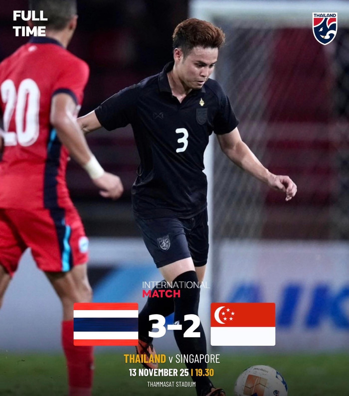 Trong trận giao hữu quốc tế diễn ra tối nay, đội tuyển Thái Lan đã đánh bại Singapore với tỷ số 3-2 trên sân nhà. Dấu ấn lớn nhất thuộc về đội trưởng Theerathon Bunmathan, người tiếp tục khẳng định đẳng cấp ngôi sao hàng đầu Đông Nam Á.