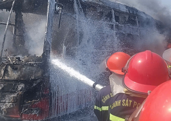 Tuy nhiên do thời tiết nắng nóng gay gắt khiến cho ngọn lửa bùng phát nhanh, mạnh, bao trùm toàn bộ xe khách, nên Cảnh sát phun bọt hơn 1 giờ sau đám cháy mới được dập tắt vào khoảng 15h30’.