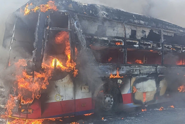 Ngọn lửa bao trùm toàn bộ xe khách.
