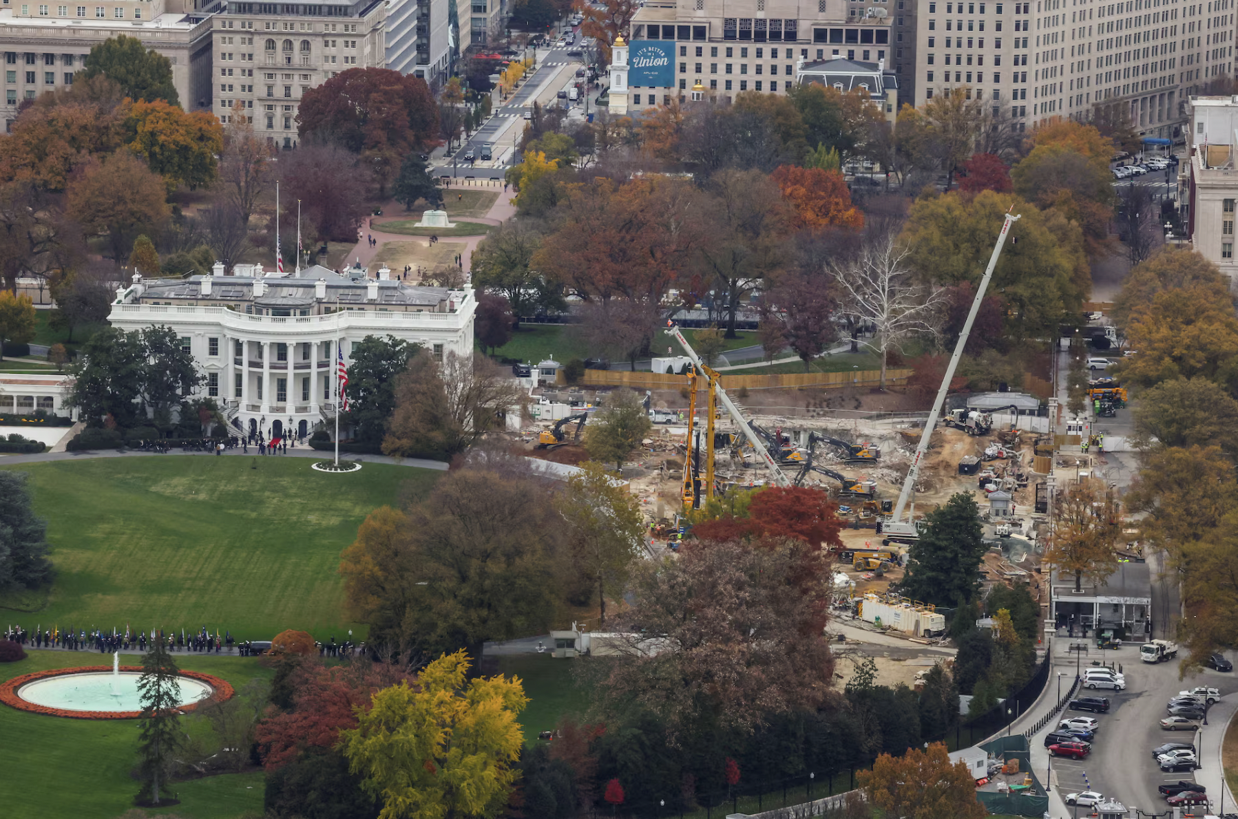 Trước đó, Tổng thống Mỹ Donald Trump đã cho phá dỡ cánh Đông lịch sử của Nhà Trắng để khởi công xây dựng phòng đại tiệc quy mô lớn, có sức chứa tối đa 1.000 khách. Ông Trump từng tuyên bố toàn bộ chi phí ước tính 400 triệu USD của dự án sẽ do nguồn đóng góp tư nhân.