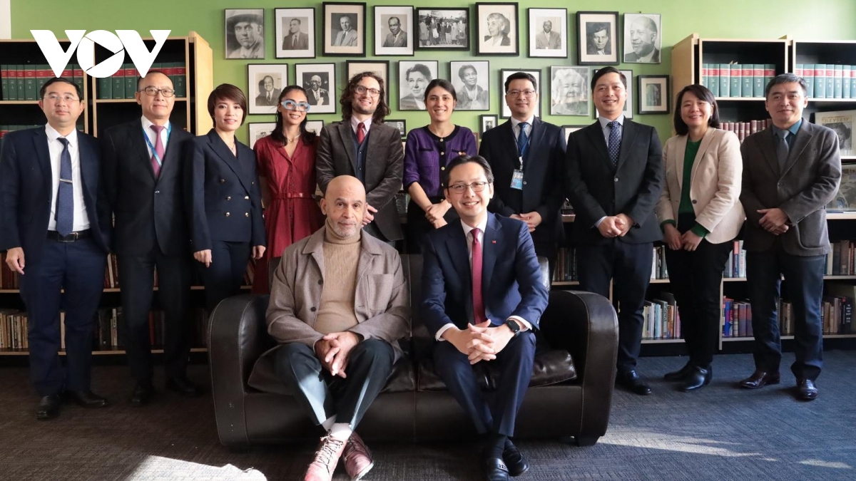 Đồng Chủ tịch Đảng Cộng sản Mỹ Joe Sims và Đại sứ Đỗ Hùng Việt