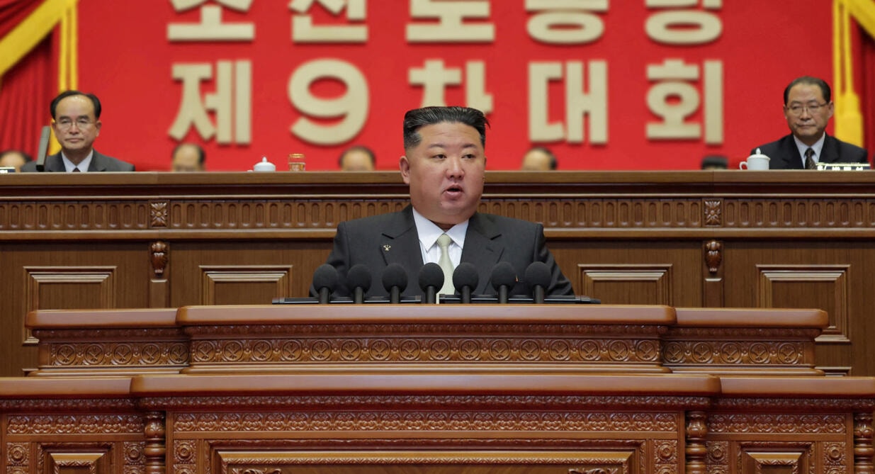 Nhà lãnh đạo Triều Tiên Kim Jong Un phát biểu tại Đại hội lần thứ IX của Đảng Lao động Triều Tiên ở Thủ đô Bình Nhưỡng. Ảnh: KCNA
