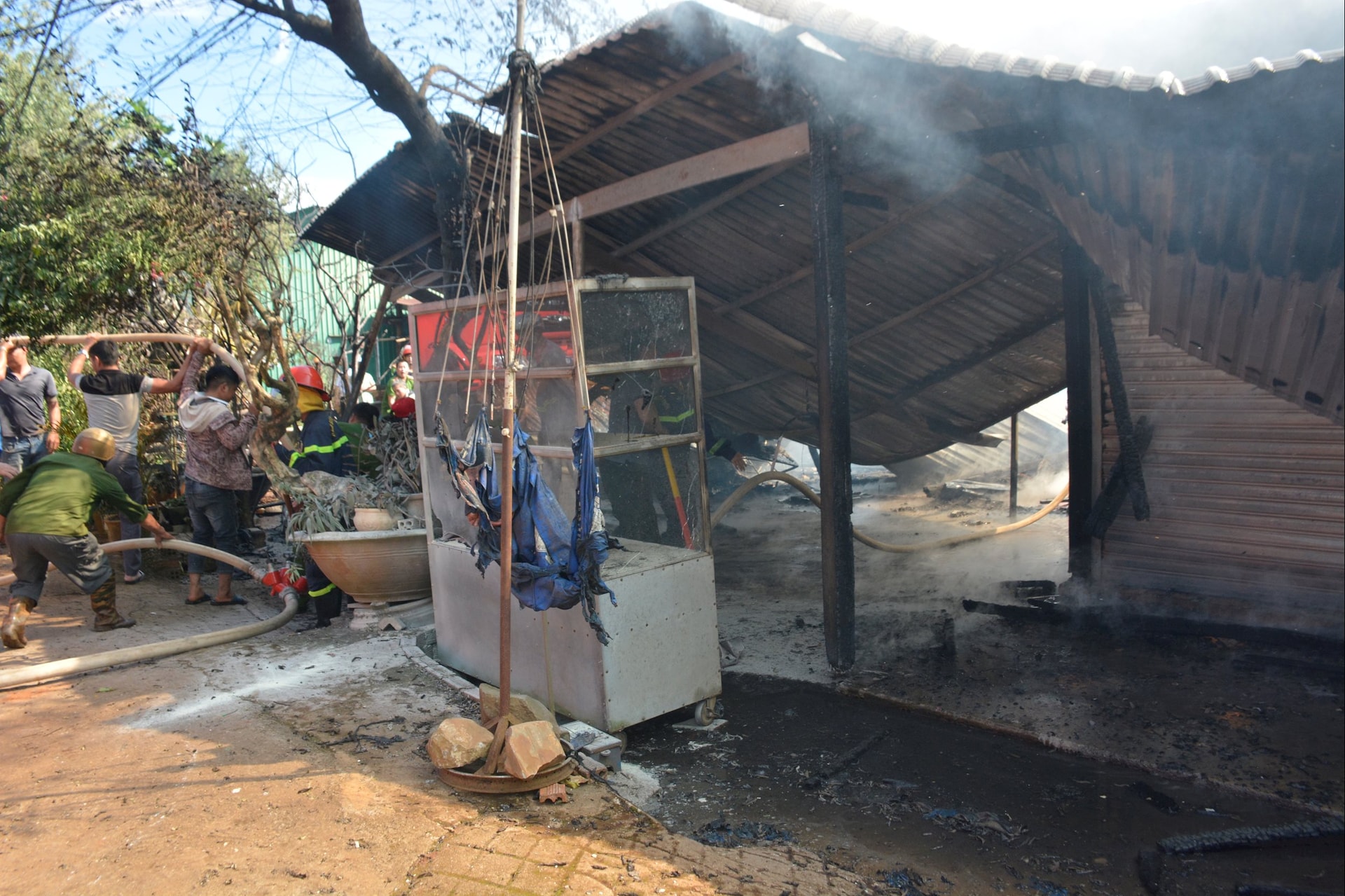 Lực lượng chữa cháy của xã, khu vực nhanh chóng có mặt nhưng khó dập lửa do cửa khóa, cháy từ phía trong, sau nhà