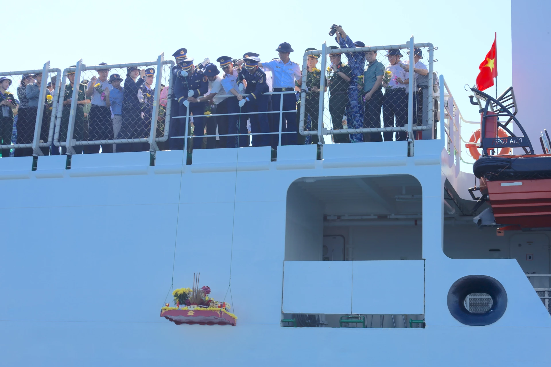 Thả hoa tưởng niệm các anh hùng liệt sĩ tàu không số tại điểm C43B - Ảnh: Q.N