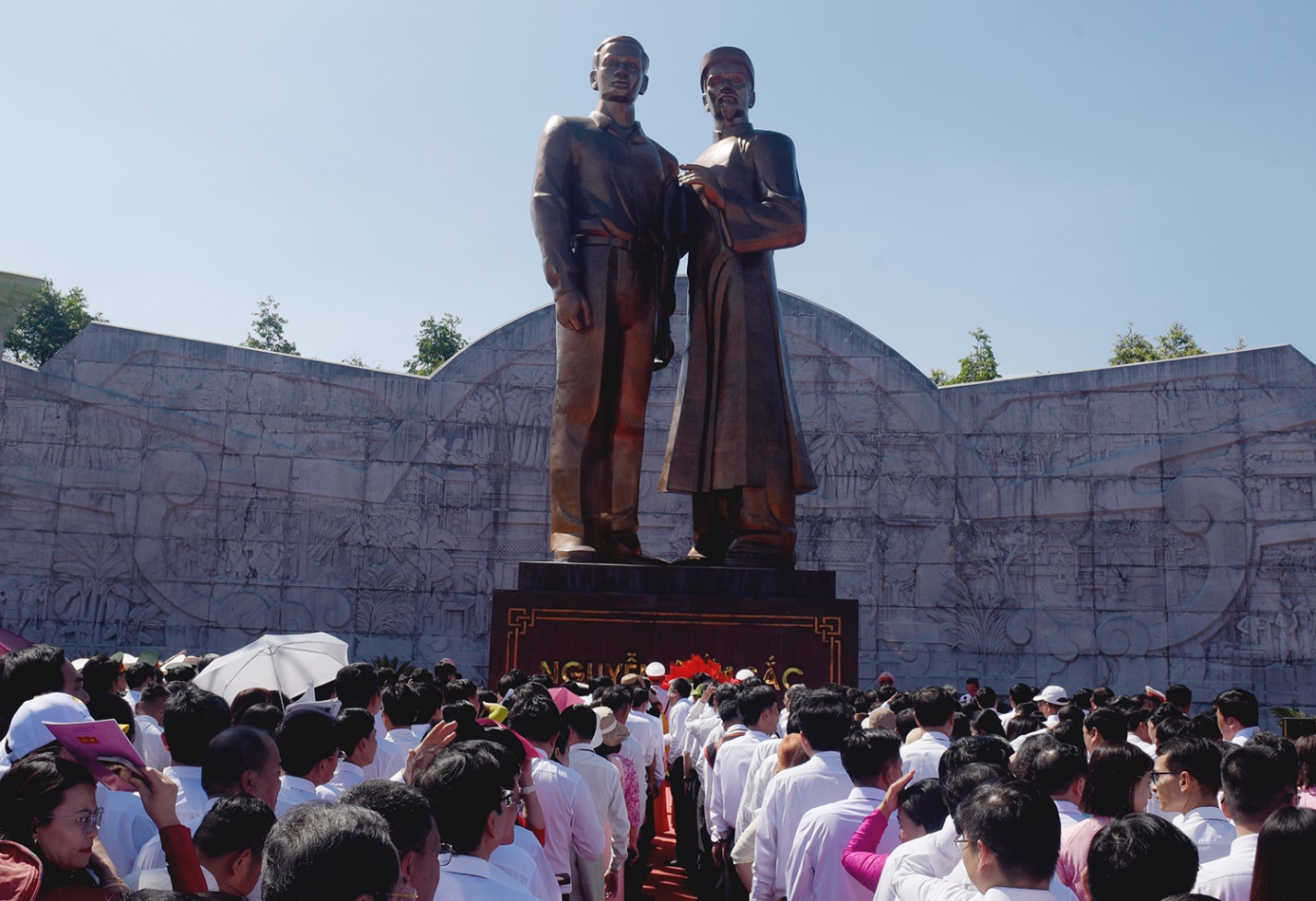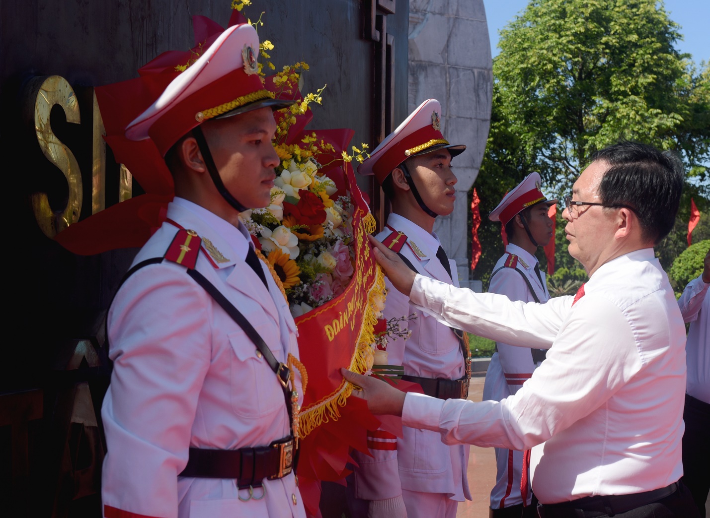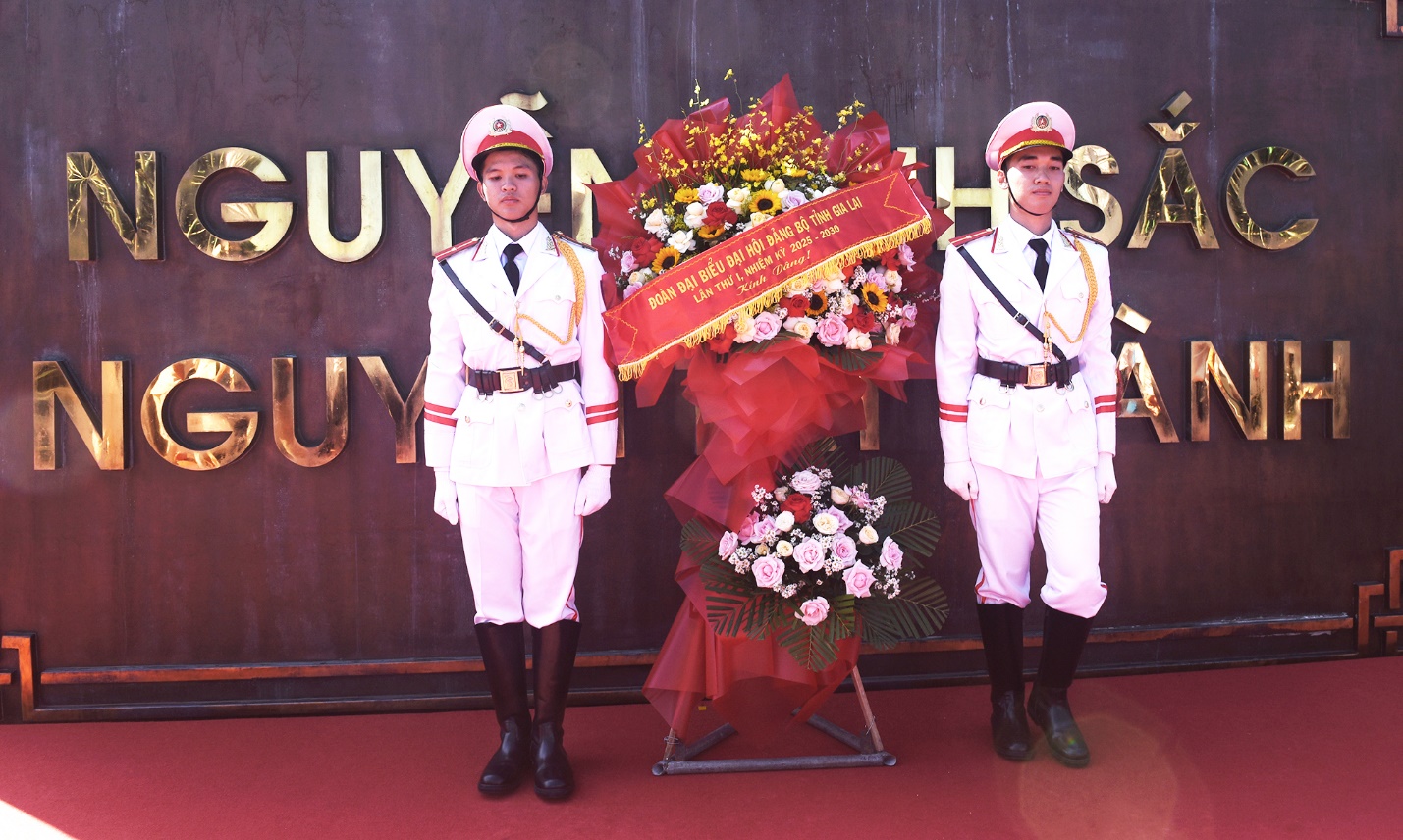 Trong không khí trang nghiêm, các đại biểu đã mặc niệm và thành kính dâng hoa trước Tượng đài Nguyễn Sinh Sắc - Nguyễn Tất Thành, thể hiện sự tưởng nhớ và tri ân của Đảng bộ, chính quyền, quân và dân tỉnh tỉnh Gia Lai đối với công lao to lớn của Chủ tịch Hồ Chí Minh và bậc sinh thành của Người.