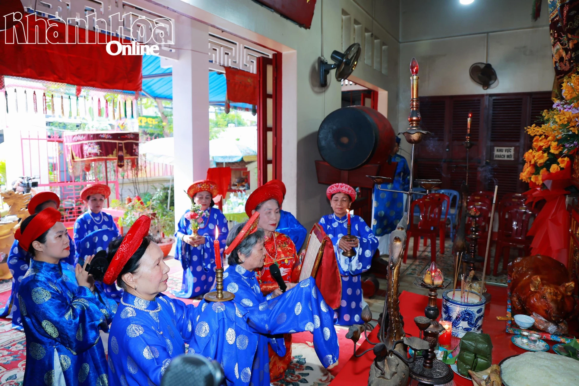 Thành viên Ban Quản lý di tích lịch sử văn hóa đền thờ Đức Trần Hưng Đạo thực hiện nghi thức tế lễ cổ truyền.