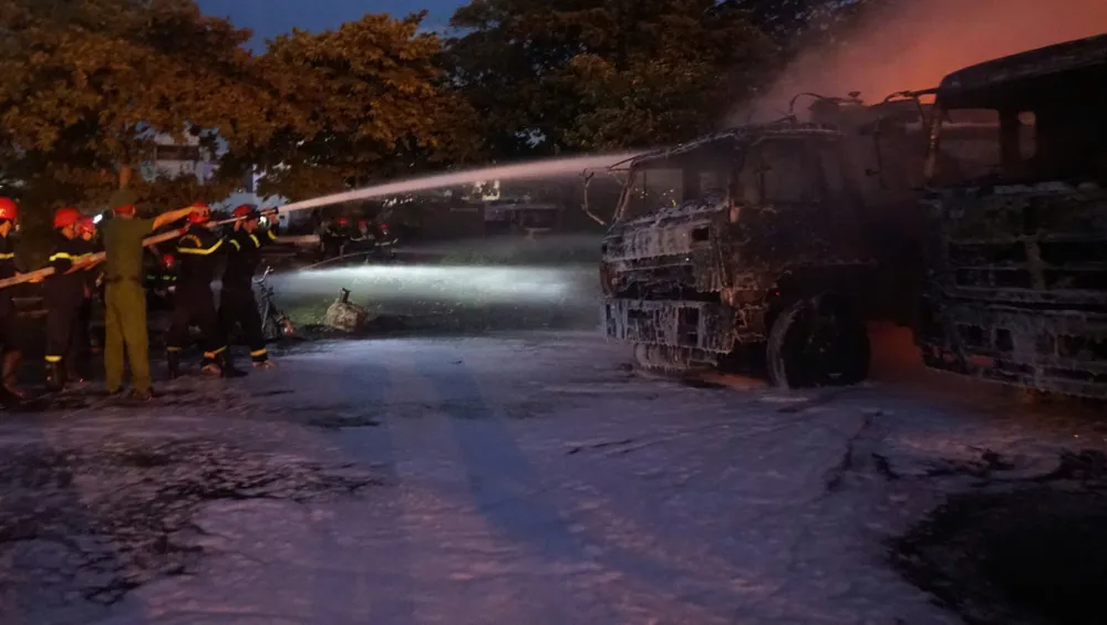 Sau khi hút xong xăng ở phuy đầu tiên, đang tiếp tục hút phuy thứ hai thì ông L nghe có tiếng xẹt điện rồi thấy lửa từ cửa kính phụ tràn vào cabin. Ông L bị bỏng và hoảng sợ nên mở cửa bên tài nhảy xuống cabin rồi bỏ chạy ra ngoài theo hướng đường Chương Dương. Ông S cũng rời khỏi hiện trường ngay sau đó.