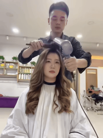 Theo đó, trong lúc làm tóc cho vị khách nữ xinh đẹp, chủ quán dùng máy sấy và sấy ngược tóc mái cho khách. Tuy nhiên, do máy thổi quá mạnh khiến mái tóc giả của nam thợ cắt tóc bung ra khỏi đầu.