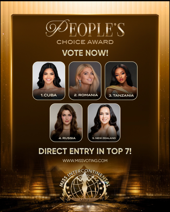 Mới đây, ban tổ chức Miss Intercontinental đã cập nhật kết quả tạm thời của hạng mục People’s Choice Award, giải thưởng do khán giả bình chọn. Theo thể lệ, thí sinh chiến thắng ở hạng mục này sẽ được đặc cách vào thẳng Top 7 trong đêm chung kết.