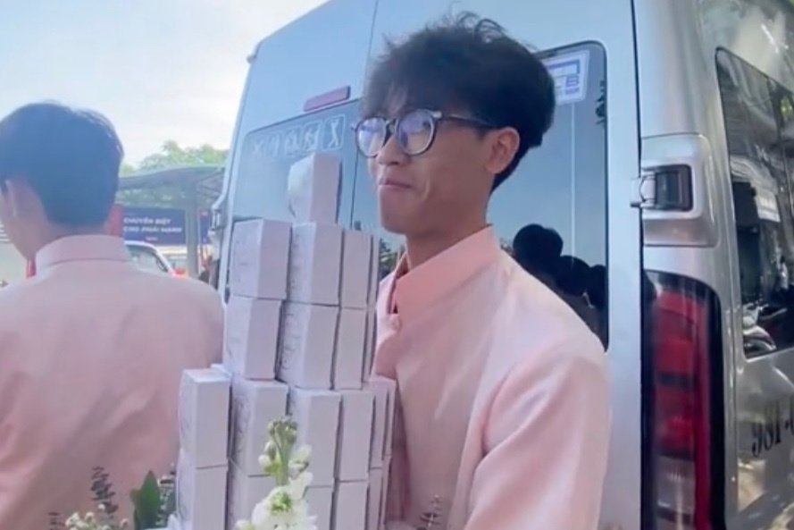Sau khi hoàn thành lễ trao tráp và chụp vài tấm ảnh cùng cô dâu chú rể, Tuấn vội thay đồ để kịp bắt chuyến xe buýt tiếp theo. Một người trong đoàn đã chạy theo xin số tài khoản để gửi Tuấn một chút tiền lì xì.
