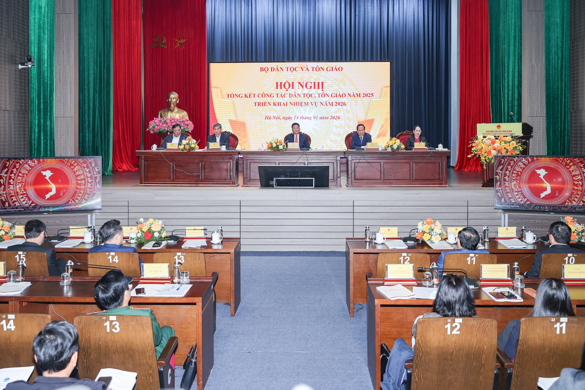 “Thay mặt Chính phủ, Thủ tướng, tôi ghi nhận, đánh giá cao và nhiệt liệt biểu dương những nỗ lực, cố gắng và những kết quả đạt được năm 2025 của Bộ Dân tộc và Tôn giáo, của ngành dân tộc và tôn giáo, các ban, bộ, ngành Trung ương và các địa phương trong triển khai công tác dân tộc, tôn giáo, góp phần quan trọng vào thành tựu phát triển chung của cả nước; đồng thời không ngừng củng cố khối đại đoàn kết toàn dân tộc, đoàn kết tôn giáo và niềm tin của đồng bào dân tộc thiểu số, đồng bào tôn giáo đối với Đảng và Nhà nước ta” - Phó Thủ tướng ghi nhận.