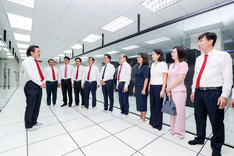 Các đại biểu tham quan Trụ sở Trung tâm dữ liệu Agribank.