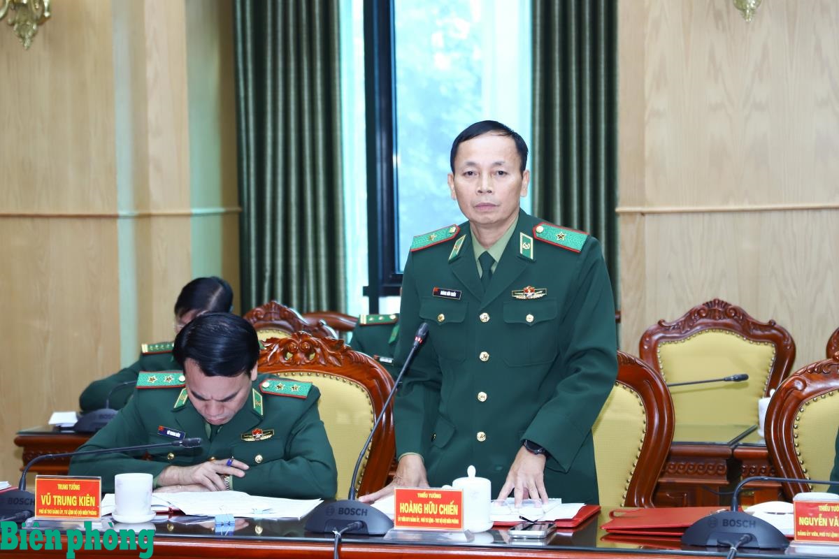 Thiếu tướng Hoàng Hữu Chiến, Ủy viên Ban Thường vụ Đảng ủy, Phó Tư lệnh, Tham mưu trưởng BĐBP phát biểu tại hội nghị. Ảnh: Ngọc Lâm