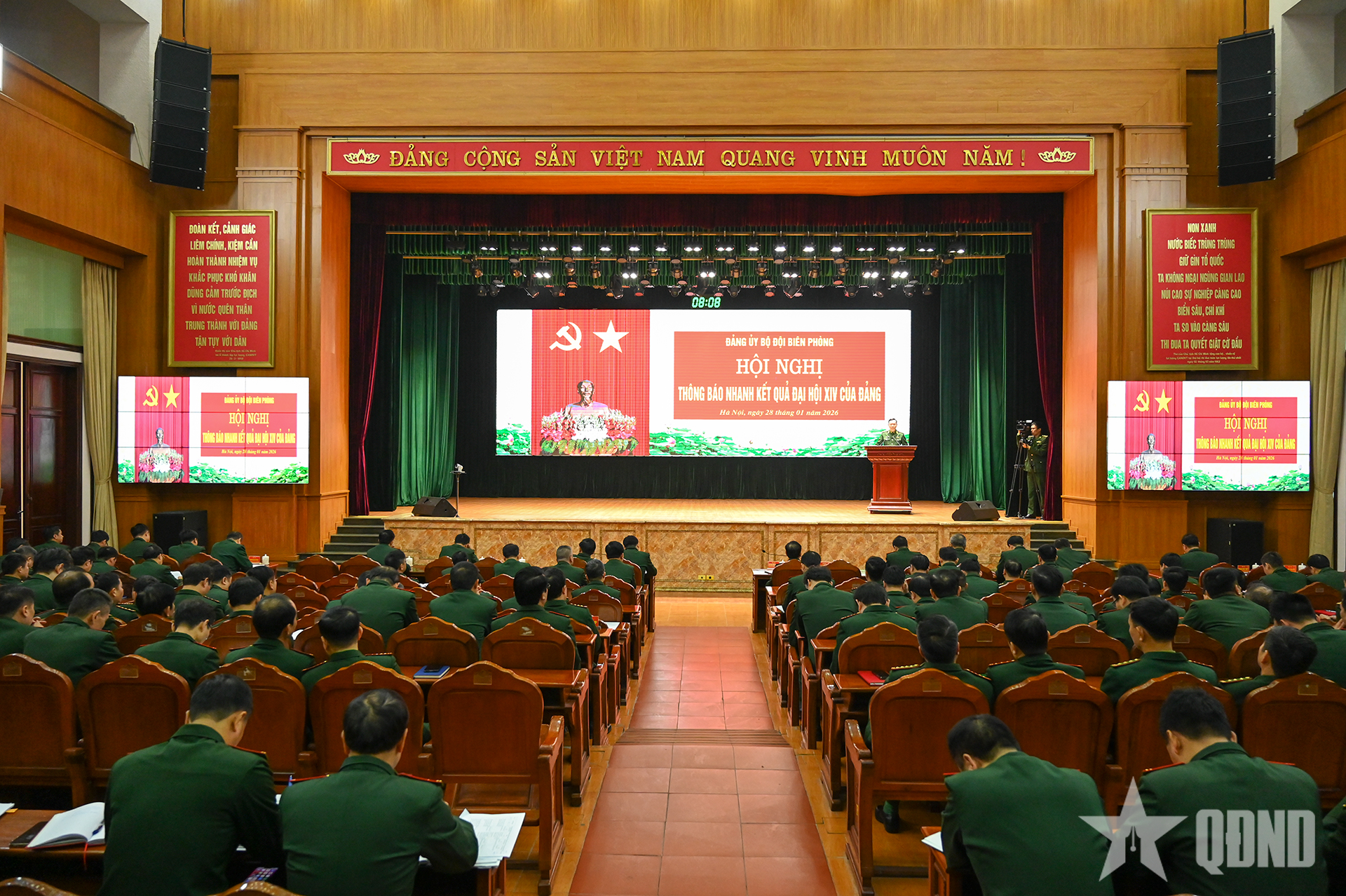 Thay mặt Thường vụ Đảng ủy Bộ đội Biên phòng, Thiếu tướng Nguyễn Xuân Toàn, Chủ nhiệm Chính trị Bộ đội Biên phòng đã thông báo nhanh kết quả của Đại hội lần thứ XIV của Đảng.