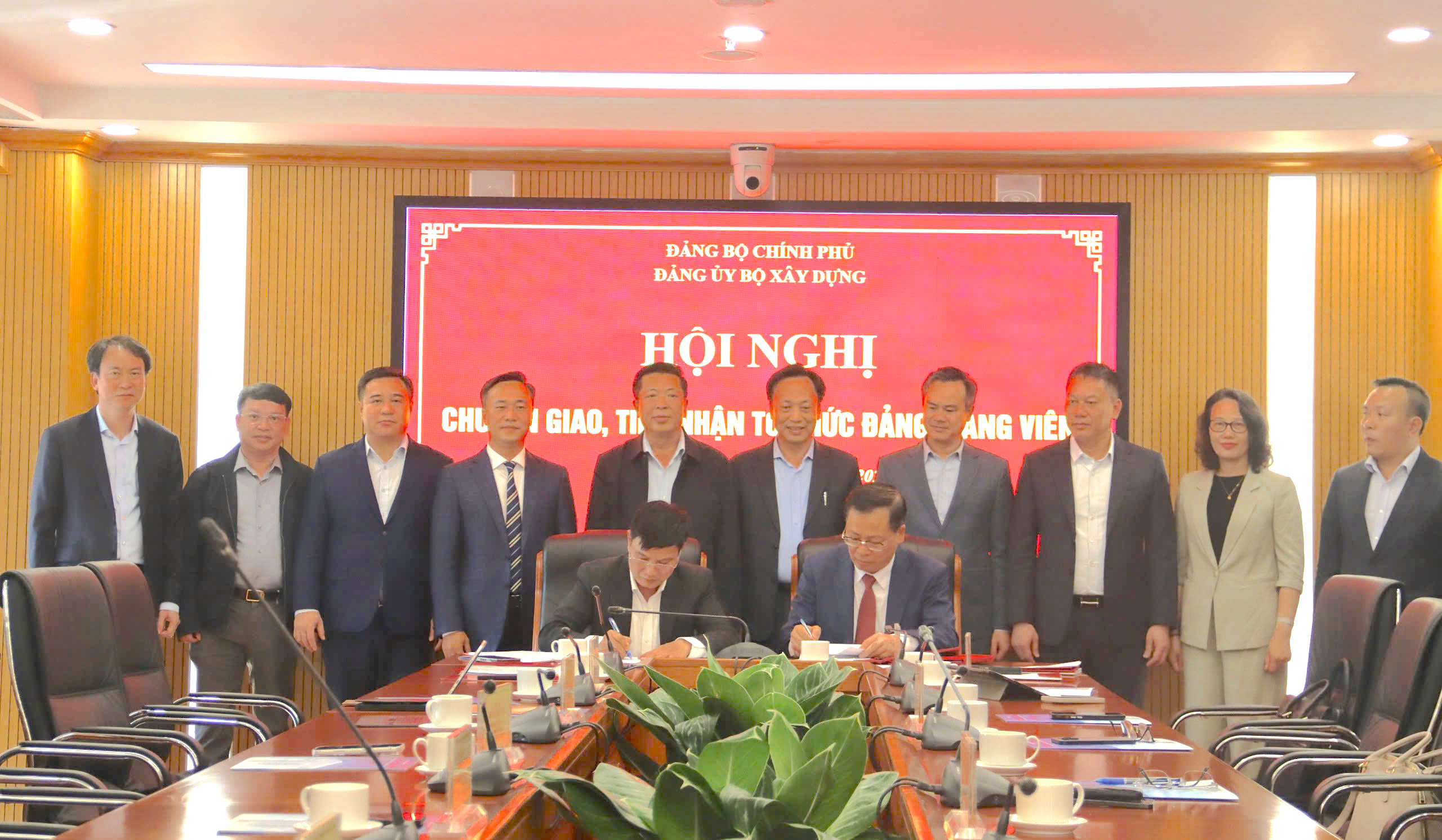 Đồng chí Chu Đình Động, Phó trưởng Ban Tổ chức Đảng ủy Chính phủ và đồng chí Đào Văn Tiến, Phó bí thư Đảng ủy Bộ Xây dựng đã ký biên bản bàn giao, tiếp nhận tổ chức đảng và đảng viên.