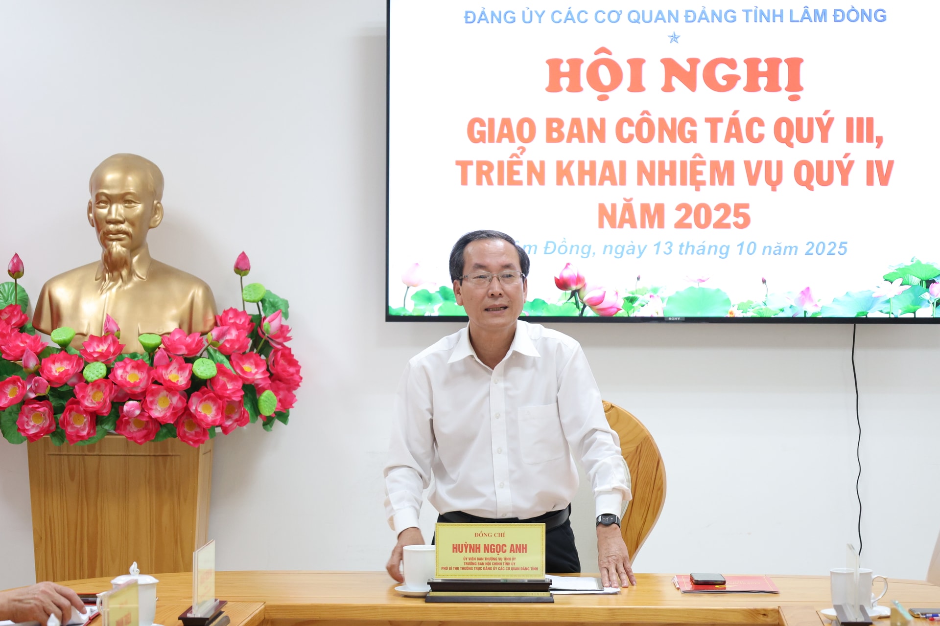 Kết luận hội nghị, đồng chí Huỳnh Ngọc Anh, Ủy viên Ban Thường vụ Tỉnh ủy, Trưởng Ban Nội chính Tỉnh ủy, Phó Bí thư Thường trực Đảng ủy các cơ quan Đảng tỉnh đề nghị các các cấp ủy, tổ chức đảng khắc phục khó khăn, rà soát lại chương trình công tác, nhất là công tác chuyên môn của cơ quan, đơn vị để hoàn thành tốt các chỉ tiêu, nhiệm vụ quý IV và năm 2025.