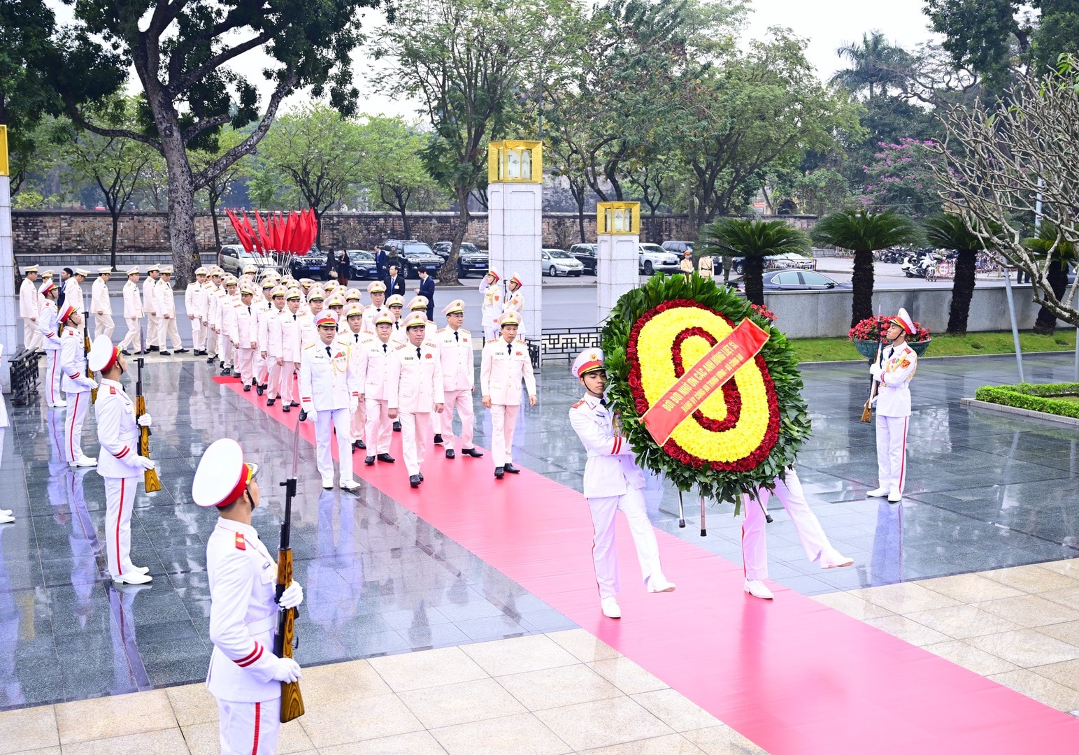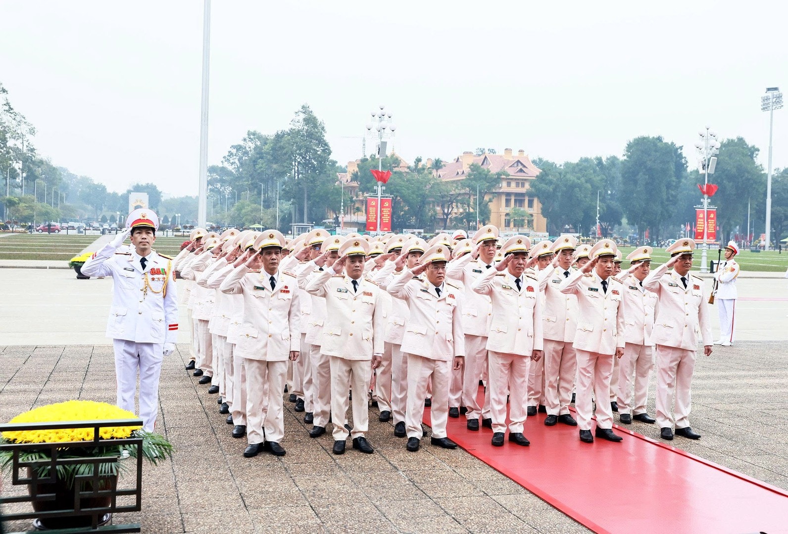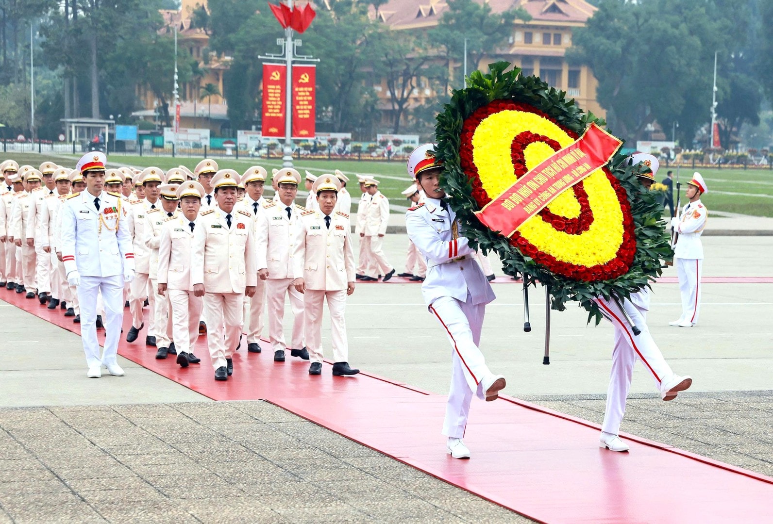 Đoàn đại biểu Đảng ủy Công an Trung ương, Bộ Công an đặt vòng hoa, vào Lăng viếng Chủ tịch Hồ Chí Minh.