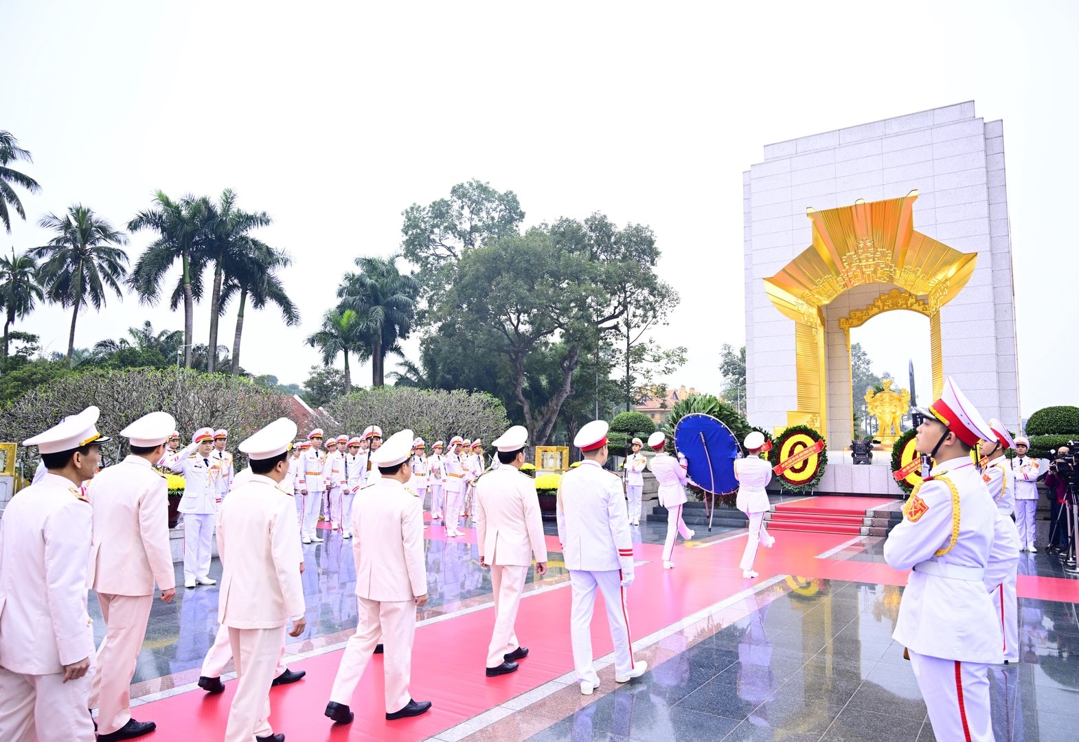 Đoàn đại biểu Đảng ủy Công an Trung ương, Bộ Công an đặt vòng hoa tưởng niệm các Anh hùng liệt sĩ tại Đài tưởng niệm các Anh hùng liệt sĩ.