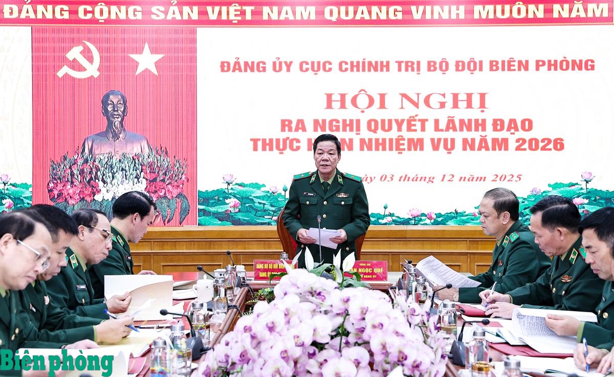 Thiếu tướng Văn Ngọc Quế lưu ý, Đảng ủy, Chỉ huy Cục Chính trị BĐBP cần tập trung xác định nhiệm vụ, giải pháp lãnh đạo thực hiện nhiệm vụ năm 2026. Tập trung lãnh đạo, chỉ đạo tiếp tục quán triệt và thực hiện nghiêm túc các nghị quyết, chỉ thị, mệnh lệnh, kế hoạch của cấp trên; nghị quyết lãnh đạo nhiệm vụ của các cấp ủy Đảng trong BĐBP. Triển khai toàn diện, có chiều sâu, trọng tâm, trọng điểm các mặt CTĐ, CTCT. Nâng cao chất lượng công tác giáo dục chính trị tư tưởng, giáo dục truyền thống, gắn với thực hiện sâu rộng, thực chất các phong trào, chương trình, cuộc vận động, các nội dung thi đua…, quyết tâm hoàn thành thắng lợi nhiệm vụ năm 2026.