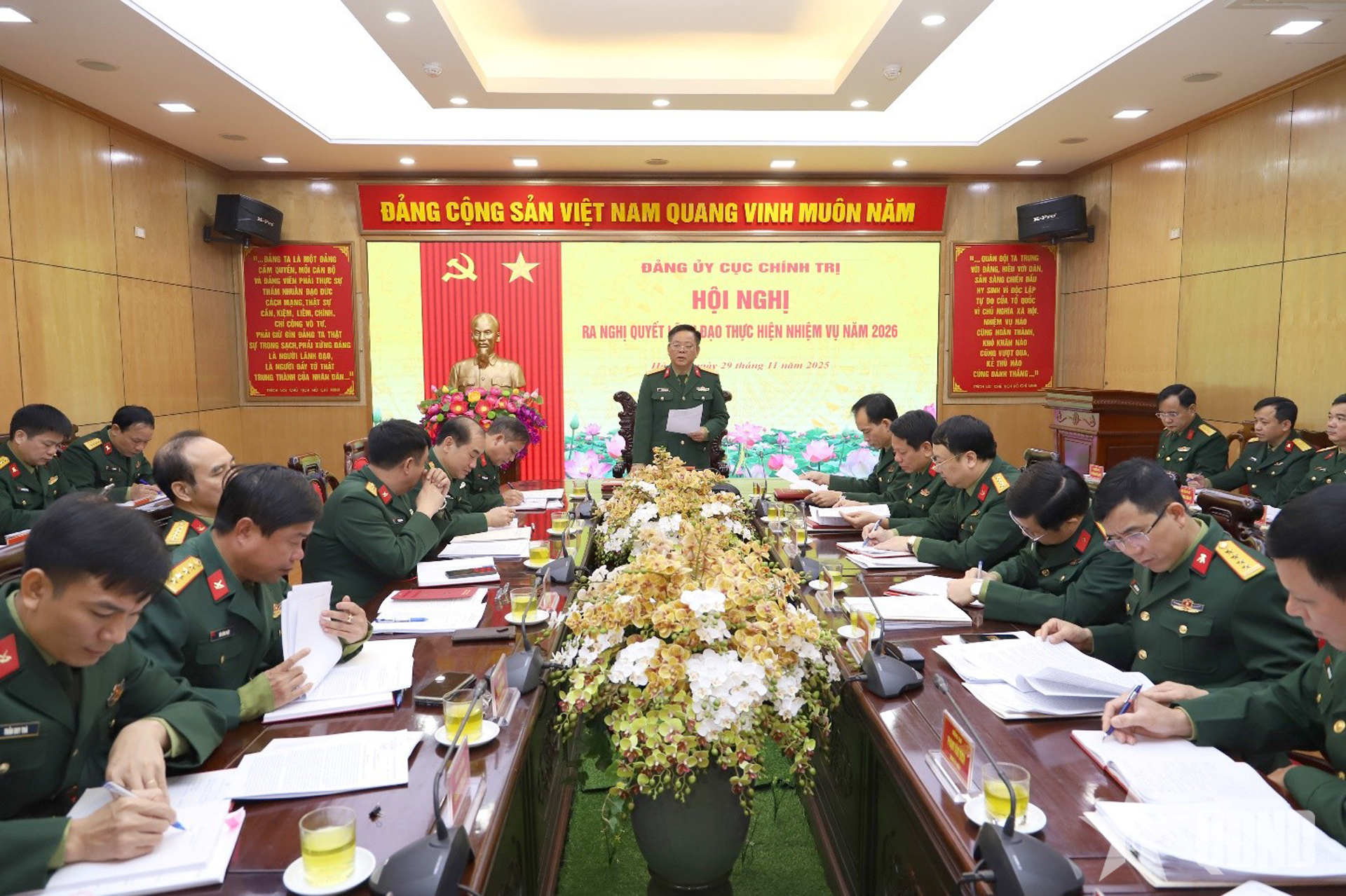 Hội nghị tập trung vào các nội dung: Ra Nghị quyết lãnh đạo thực hiện nhiệm vụ năm 2026; thông qua dự thảo báo cáo tổng kết công tác năm 2025; nghe báo cáo kết quả các mặt công tác trọng yếu năm 2025 theo quy chế của Đảng ủy Cục; thông qua dự thảo Chương trình hành động thực hiện Nghị quyết Đại hội Đảng bộ Cục Chính trị lần thứ I, Nghị quyết Đại hội Đảng bộ Tổng cục HC-KT lần thứ I, nhiệm kỳ 2025 - 2030; thông qua dự thảo Kế hoạch triển khai thực hiện Chỉ thị số 43-CT/TW ngày 10-4-2025 của Bộ Chính trị về tăng cường sự lãnh đạo của Đảng đối với công tác thể chế hóa chủ trương, đường lối của Đảng về phòng, chống tham nhũng, lãng phí, tiêu cực thành pháp luật của Nhà nước trong Đảng bộ Cục Chính trị.