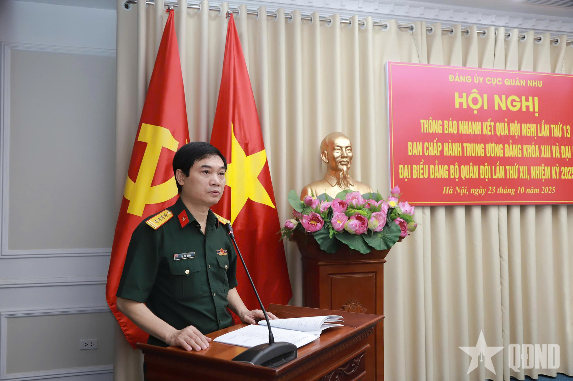 Tại hội nghị, các đại biểu nghe Đại tá Hà Chí Dũng, Bí thư Đảng ủy, Phó cục trưởng Cục Quân nhu quán triệt những nội dung trọng tâm, cốt lõi về kết quả Hội nghị lần thứ 13 Ban Chấp hành Trung ương Đảng khóa XIII và Đại hội đại biểu Đảng bộ Quân đội lần thứ XII, nhiệm kỳ 2025-2030.