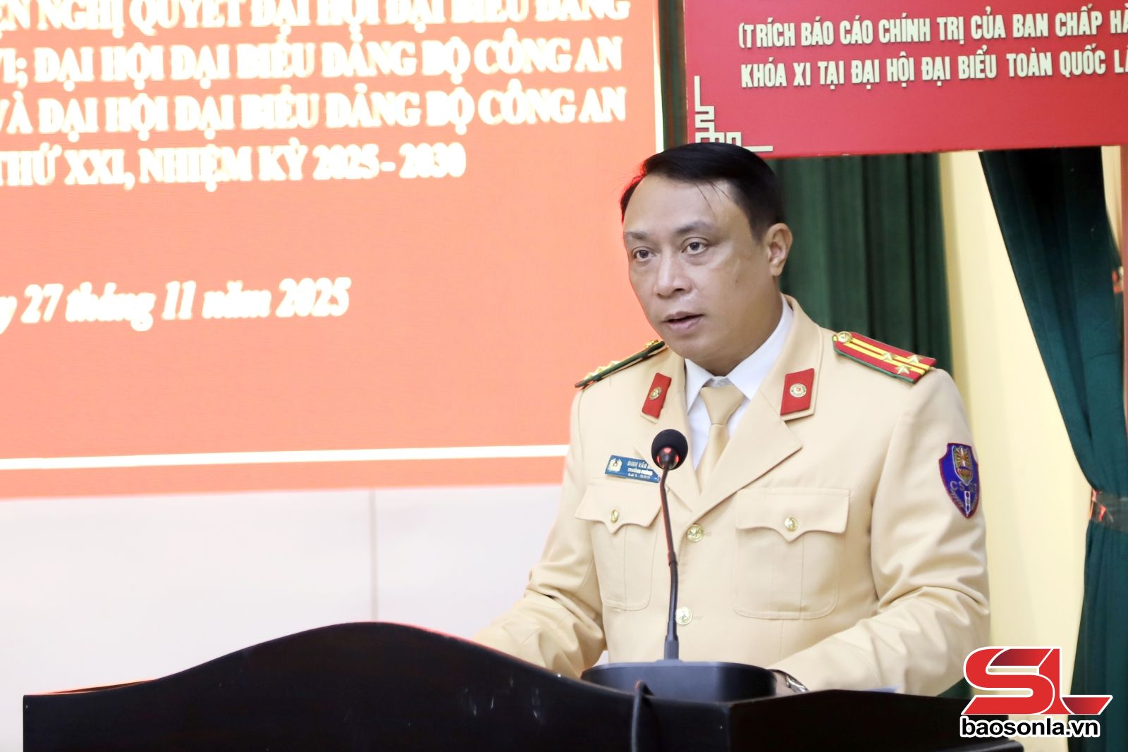 Lãnh đạo Đảng ủy Phòng Cảnh sát Giao thông phát biểu tại Hội nghị.