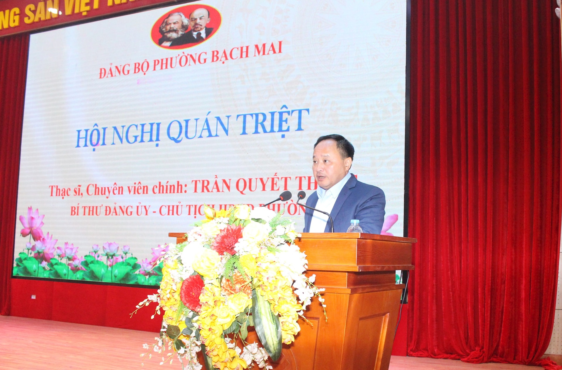 Bí thư Đảng ủy, Chủ tịch HĐND phường Bạch Mai Trần Quyết Thắng chủ trì và quán triệt tại hội nghị. Ảnh: Đình Hiệp