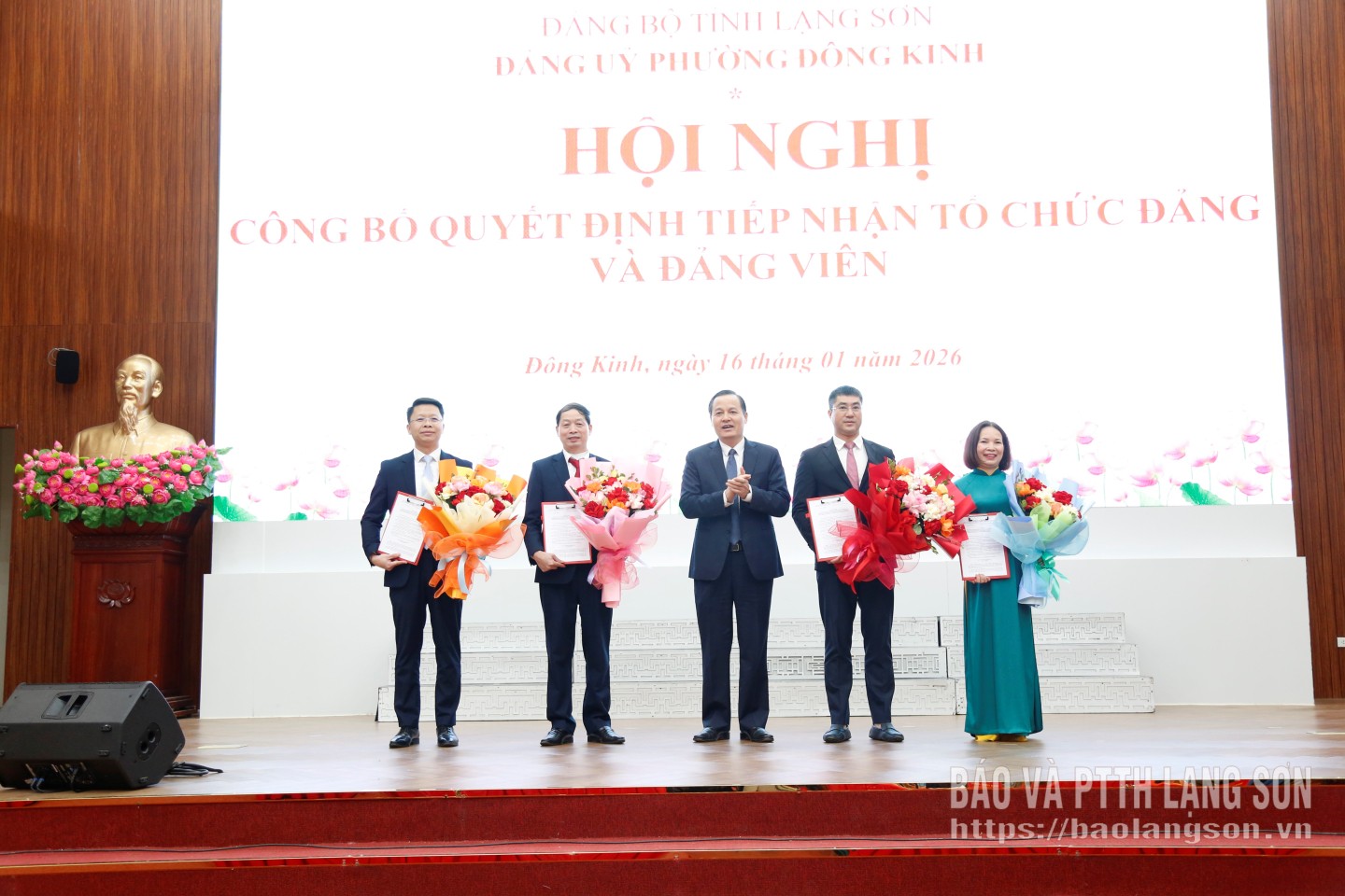Tại hội nghị, lãnh đạo Ban Xây dựng đảng Đảng ủy phường đã công bố quyết định về tiếp nhận các tổ chức đảng và đảng viên từ trực thuộc Đảng ủy Ngân hàng Thương mại Nhà nước thuộc Đảng bộ Ngân hàng Nhà nước, thuộc Đảng bộ Chính phủ về trực thuộc Đảng bộ phường Đông Kinh. Theo đó, Đảng bộ phường tiếp nhận 4 tổ chức đảng gồm: Đảng bộ Ngân hàng thương mại cổ phần Đầu tư và Phát triển Việt Nam chi nhánh Lạng Sơn, Đảng bộ Ngân hàng Nông nghiệp và Phát triển Nông thôn chi nhánh Lạng Sơn, Đảng bộ Ngân hàng Thương mại cổ phần Công thương Việt Nam – chi nhánh Lạng Sơn, Chi bộ Ngân hàng thương mại cổ phần Ngoại thương Việt Nam – chi nhánh Lạng Sơn và 396 đảng viên của 4 tổ chức đảng.