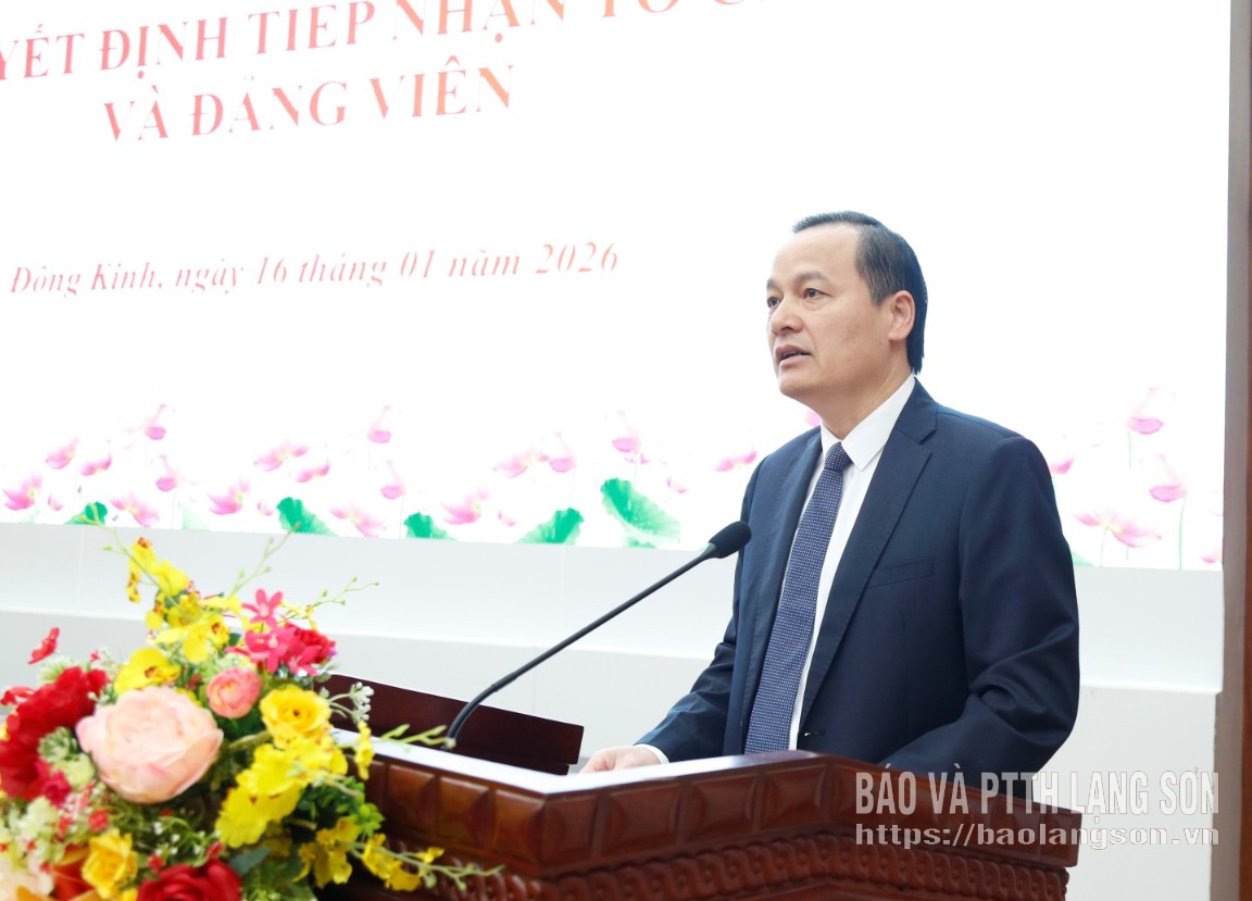 Lãnh đạo Ban Xây dựng đảng Đảng ủy phường Đông Kinh công bố quyết định tiếp nhận các tổ chức đảng và đảng viên