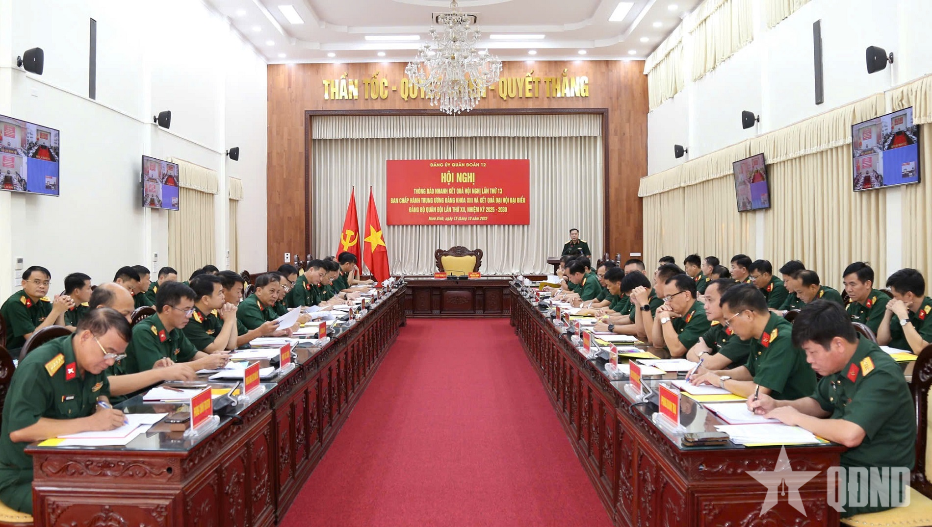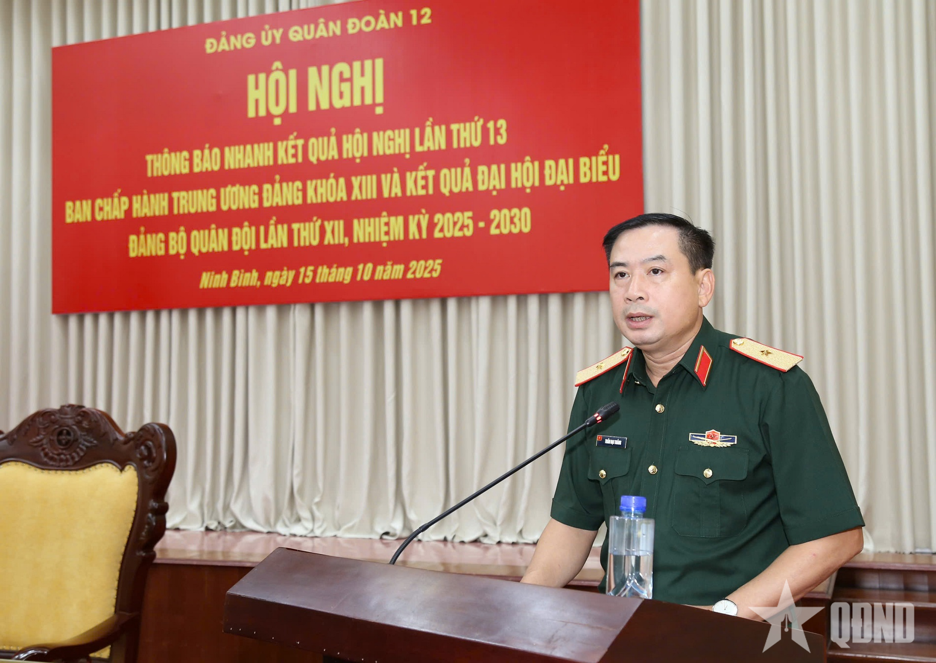 Phát biểu kết luận hội nghị, Thiếu tướng Trần Đại Thắng, Bí thư Đảng ủy, Chính ủy Quân đoàn 12 yêu cầu các cấp ủy, tổ chức đảng trong Đảng bộ Quân đoàn sớm tổ chức phổ biến, quán triệt nội dung hội nghị đến toàn thể cán bộ, đảng viên và quần chúng trong đơn vị; đồng thời cụ thể hóa thành chương trình hành động, nghị quyết chuyên đề phù hợp với tình hình thực tiễn, góp phần nâng cao chất lượng công tác xây dựng Đảng, xây dựng đơn vị vững mạnh toàn diện “mẫu mực, tiêu biểu”.