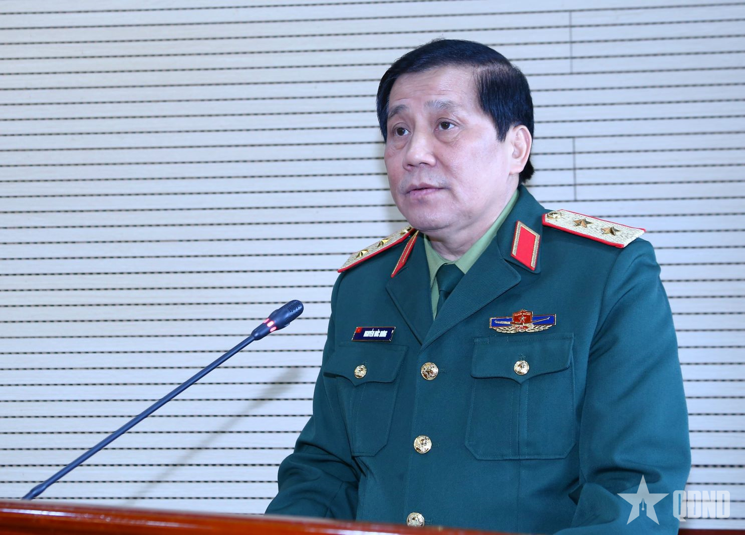 Trung tướng Nguyễn Đức Hưng, Bí thư Đảng ủy, Chính ủy Quân khu 3 chủ trì hội nghị.