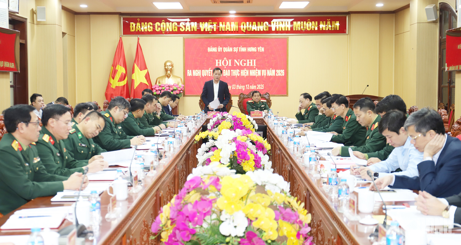 Năm 2025, Đảng ủy Quân sự tỉnh Hưng Yên đã lãnh đạo, chỉ đạo, quán triệt, tham mưu đề xuất, triển khai thực hiện toàn diện các nhiệm vụ, có nhiều nhiệm vụ hoàn thành tốt.