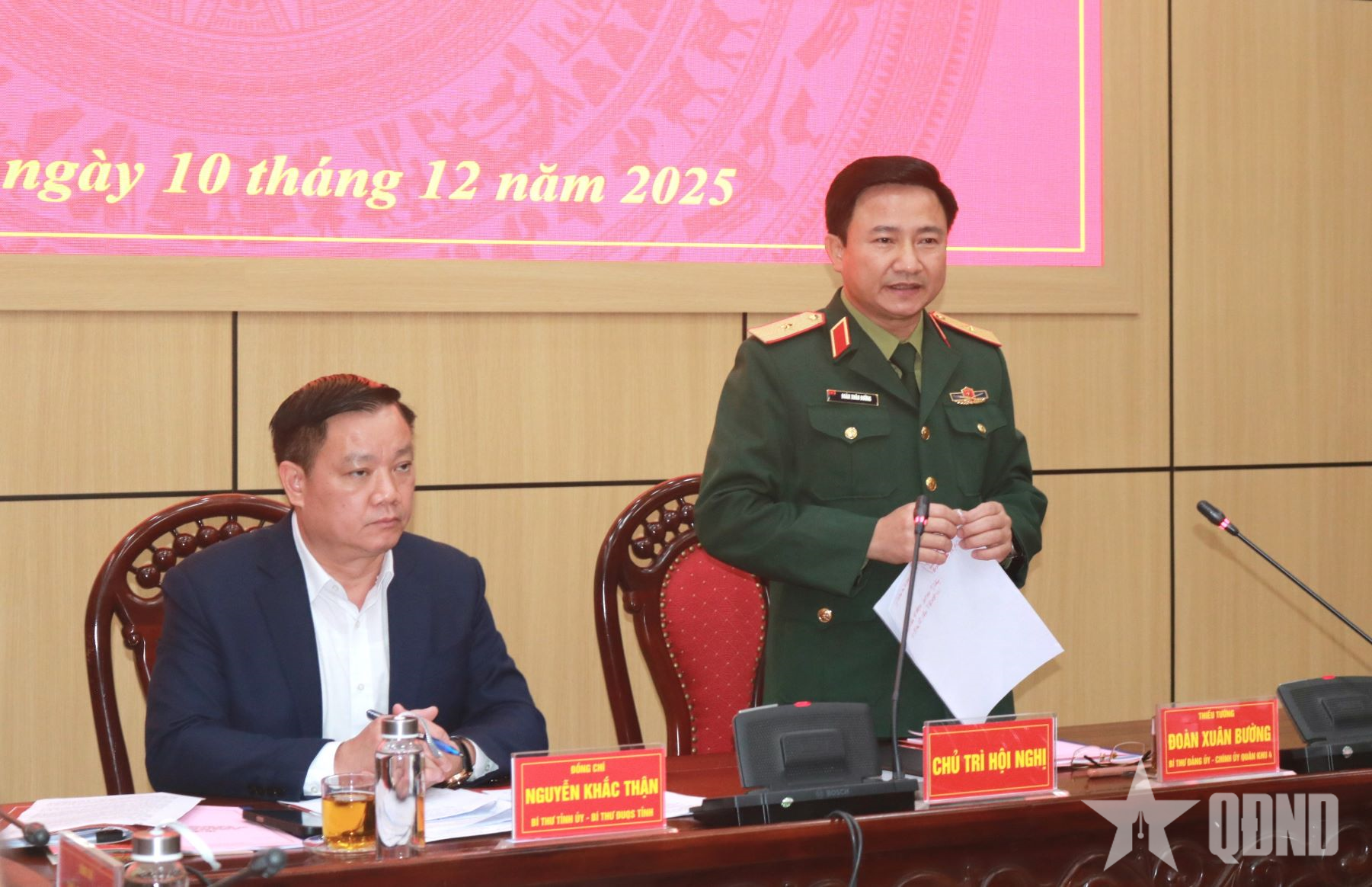 Phát biểu tại hội nghị, Thiếu tướng Đoàn Xuân Bường ghi nhận, đánh giá cao kết quả mà Đảng ủy Quân sự tỉnh Nghệ An đã lãnh đạo, chỉ đạo, triển khai, tổ chức thực hiện trong năm 2025.