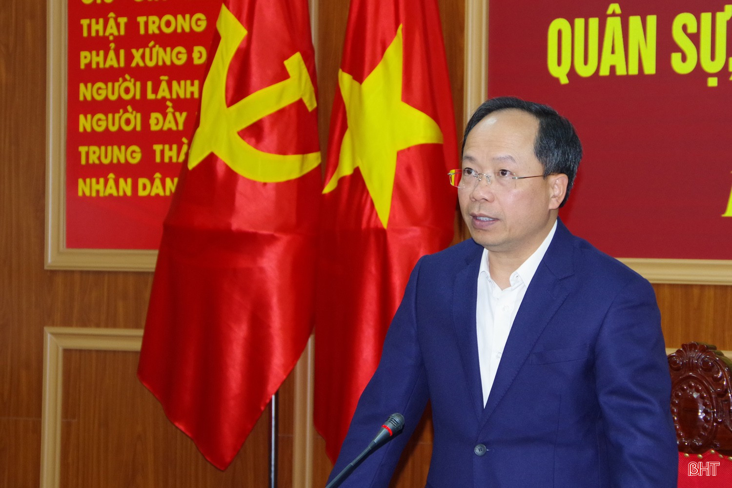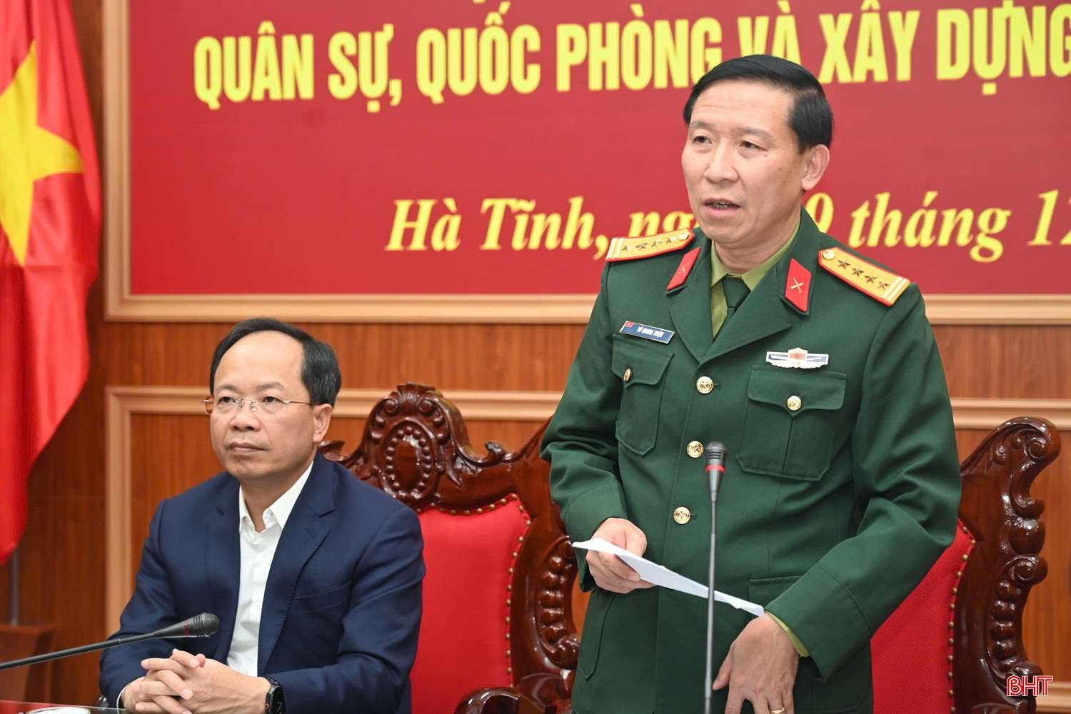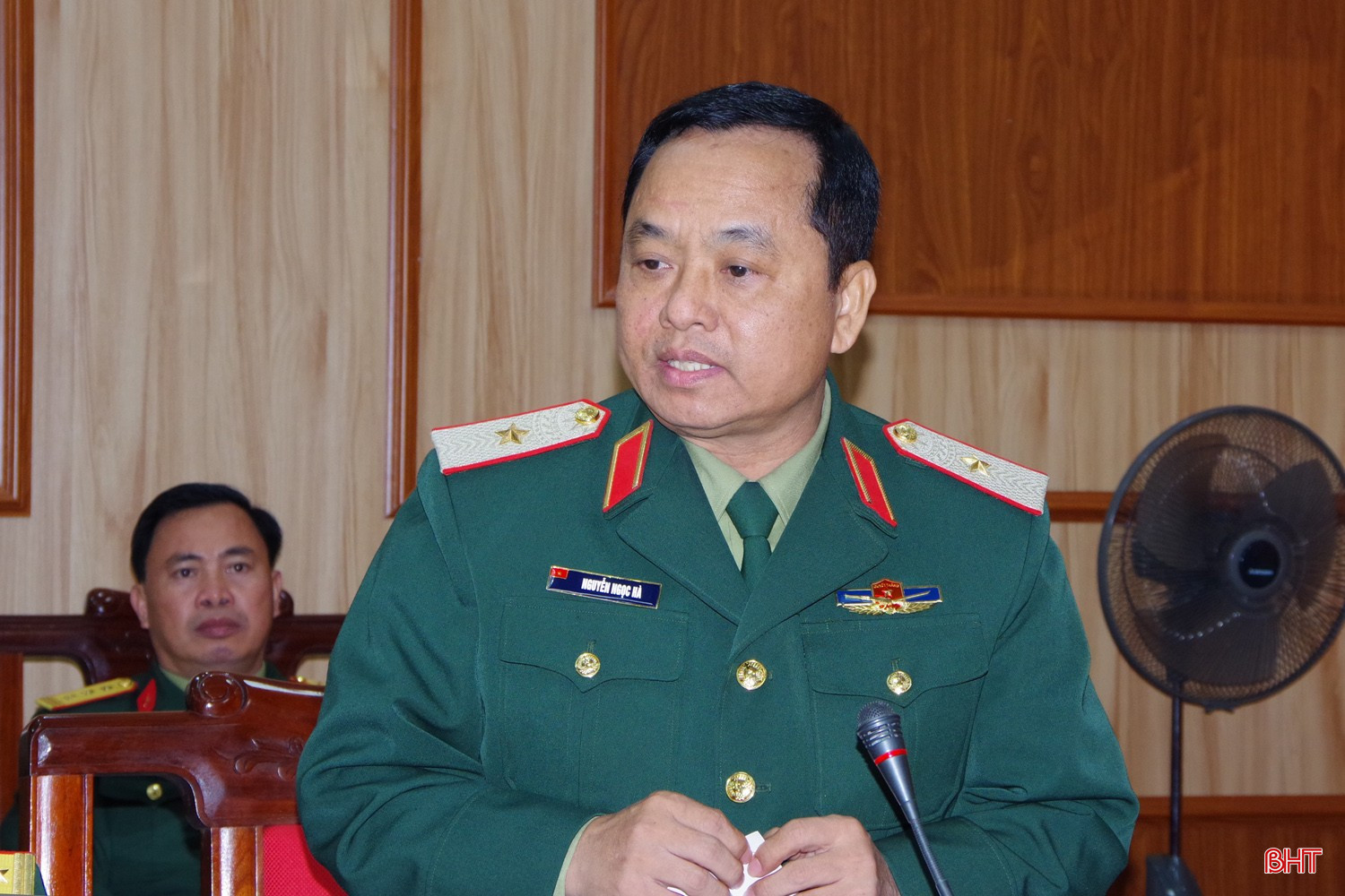 Phát biểu chỉ đạo hội nghị, Thiếu tướng Nguyễn Ngọc Hà - Phó Tư lệnh Quân khu 4 yêu cầu Đảng ủy quân sự tỉnh Hà Tĩnh tiếp tục tham mưu cho cấp ủy, chính quyền địa phương triển khai thực hiện tốt nhiệm vụ quân sự, quốc phòng; đẩy nhanh tiến độ xây dựng thao trường bắn biển cấp tỉnh; quy hoạch, bố trí và xây dựng trụ sở làm việc riêng của BCH quân sự cấp xã. Tiến hành xây dựng Đề án tổ chức thành lập tiểu đội dân quân thường trực các xã, phường đáp ứng yêu cầu nhiệm vụ đặt ra; đẩy mạnh hơn nữa công tác tăng gia sản xuất theo hướng đa dạng, bền vững gắn với xây dựng doanh trại chính quy, sáng, xanh, sạch, đẹp.